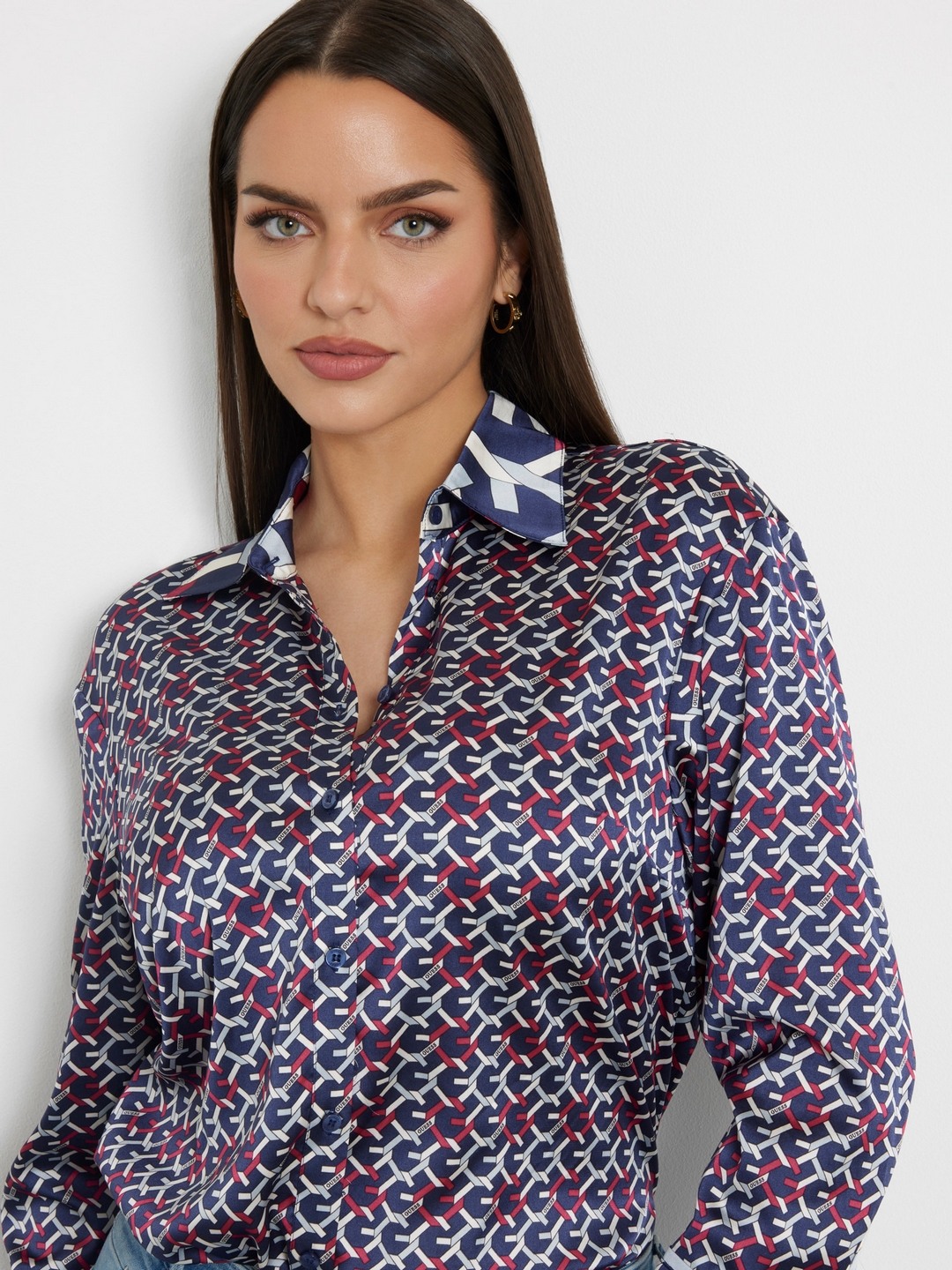 Elevate your wardrobe with our vibrant multicolor shirt, designed for the modern woman who appreciates style and comfort. This regular fit shirt features a striking printed pattern that adds a splash of color to any outfit. Crafted from a premium polyester blend fabric, it ensures a soft touch and lasting durability. The full sleeves offer versatility for all seasons, while the classic spread collar adds a touch of sophistication. Secure with ease using the button closure, perfect for both casual outings and professional settings. Embrace elegance and flair with this must-have addition to your collection.