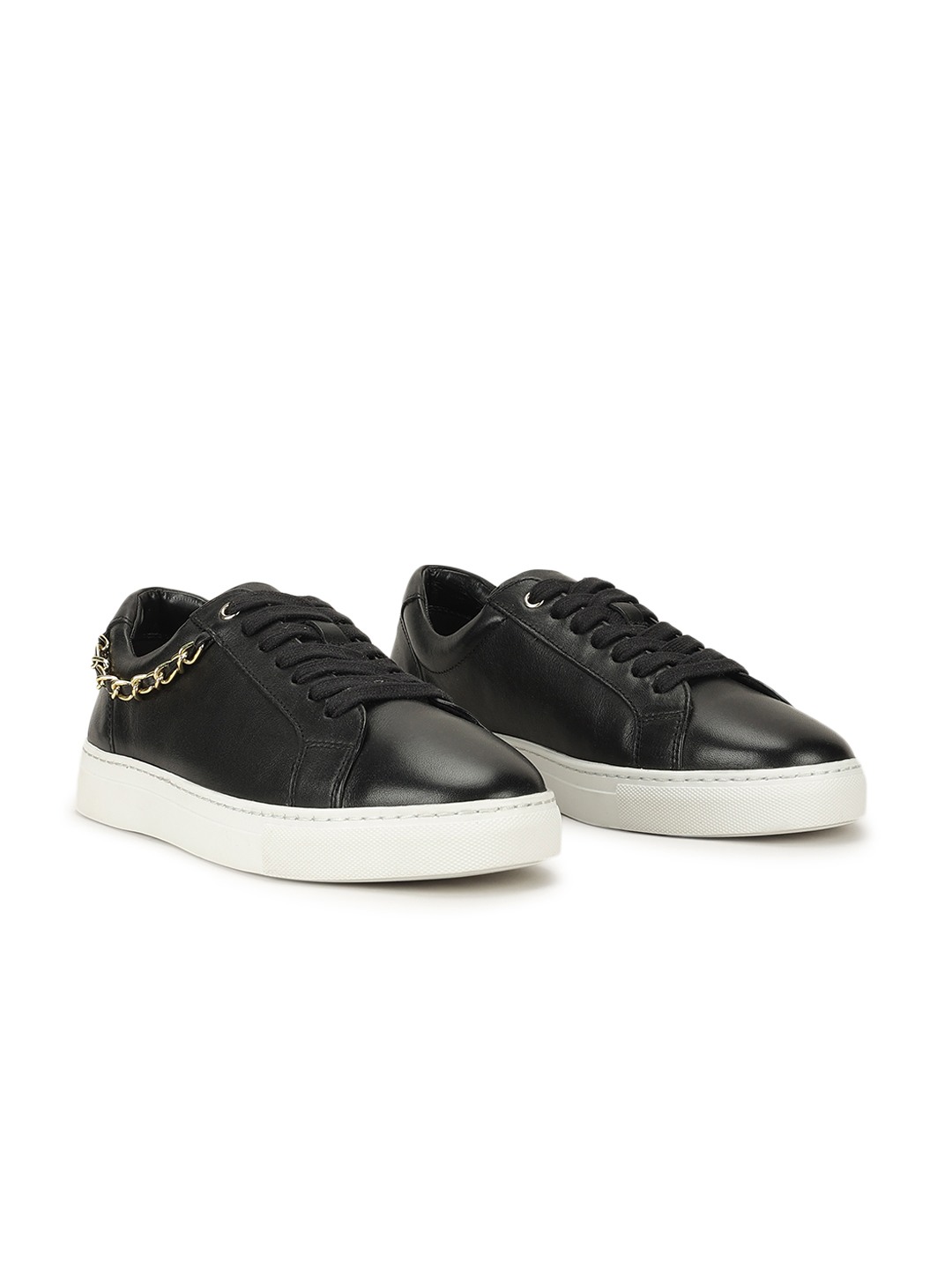 Step into style and comfort with our sleek black leather sneakers designed exclusively for women. Crafted from 100% premium leather, these sneakers offer a luxurious feel and long-lasting durability. The solid pattern adds a touch of elegance, making them perfect for any occasion. Whether you're heading to work or out for a casual day, these sneakers provide the perfect blend of fashion and function. The cushioned insole ensures all-day comfort, while the sturdy sole offers excellent traction. Elevate your footwear collection with these versatile sneakers.