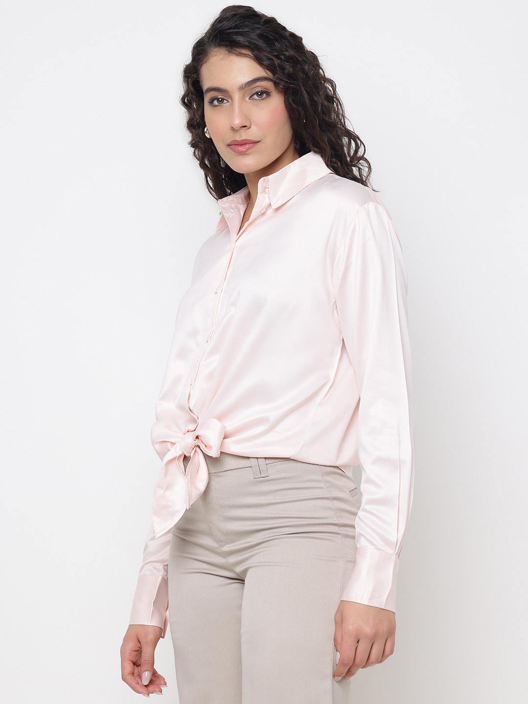 Elevate your wardrobe with our elegant women's shirt, designed in a classic regular fit that offers both comfort and style. Crafted from high-quality polyester fabric, this shirt ensures a smooth, soft feel against the skin while providing durability and easy maintenance. The solid pattern adds a touch of sophistication, making it versatile for both professional and casual settings. Featuring full sleeves and a spread collar, it exudes timeless charm. The button closure adds a refined finish, making it a must-have staple for any fashion-forward woman.