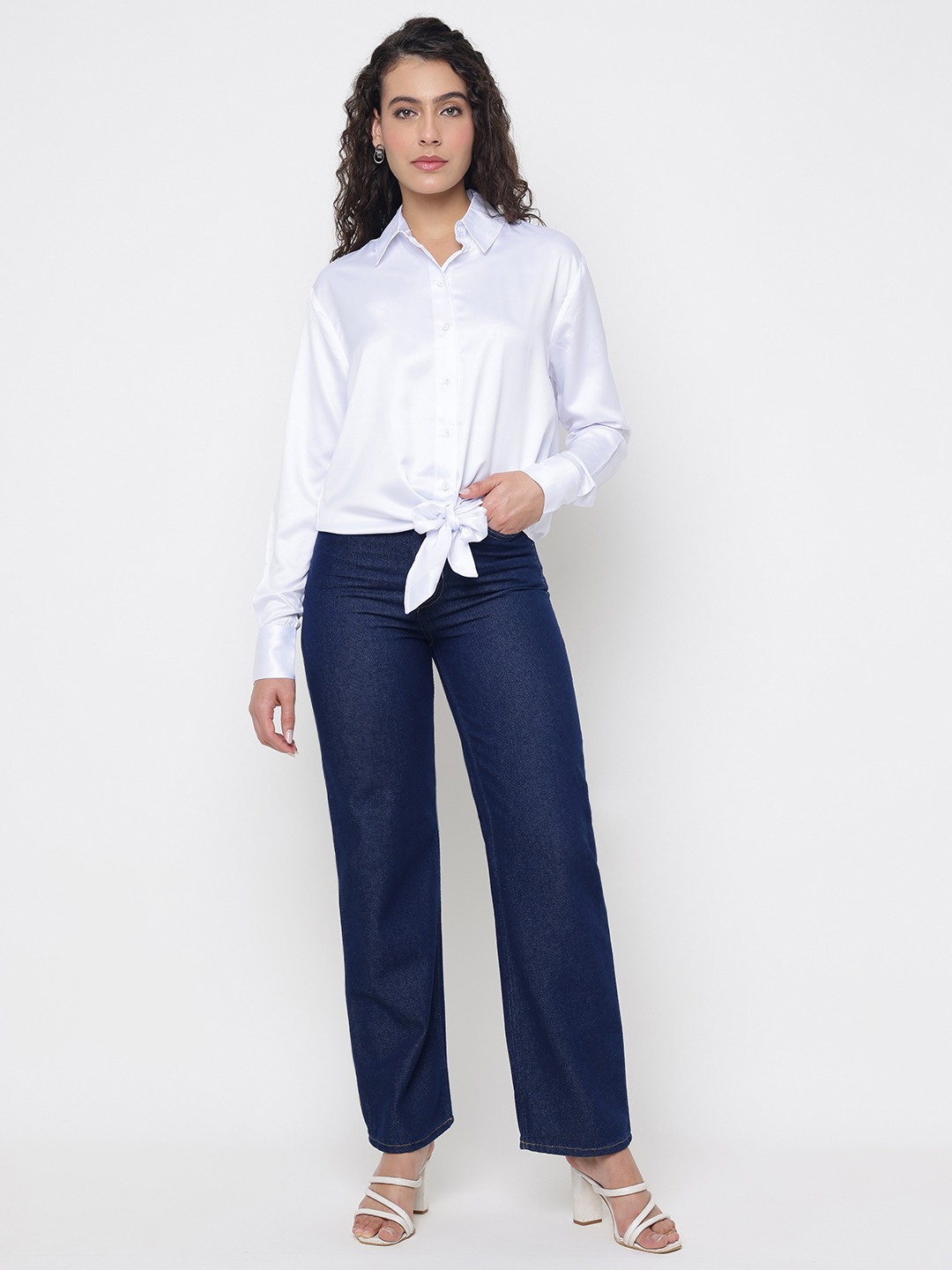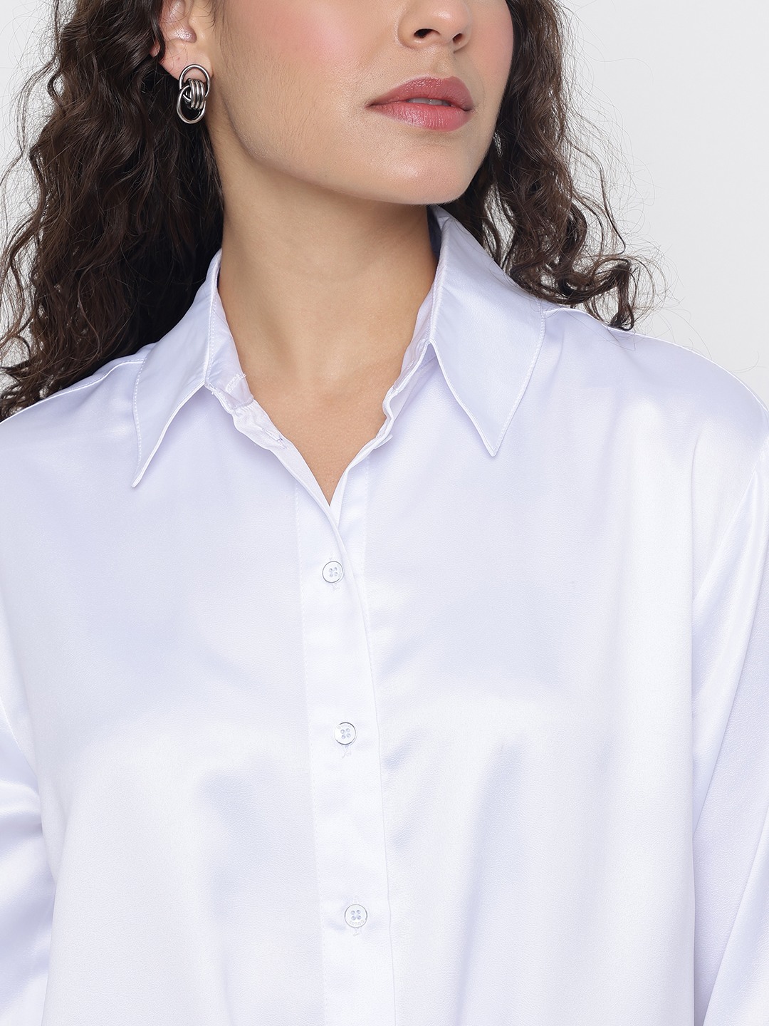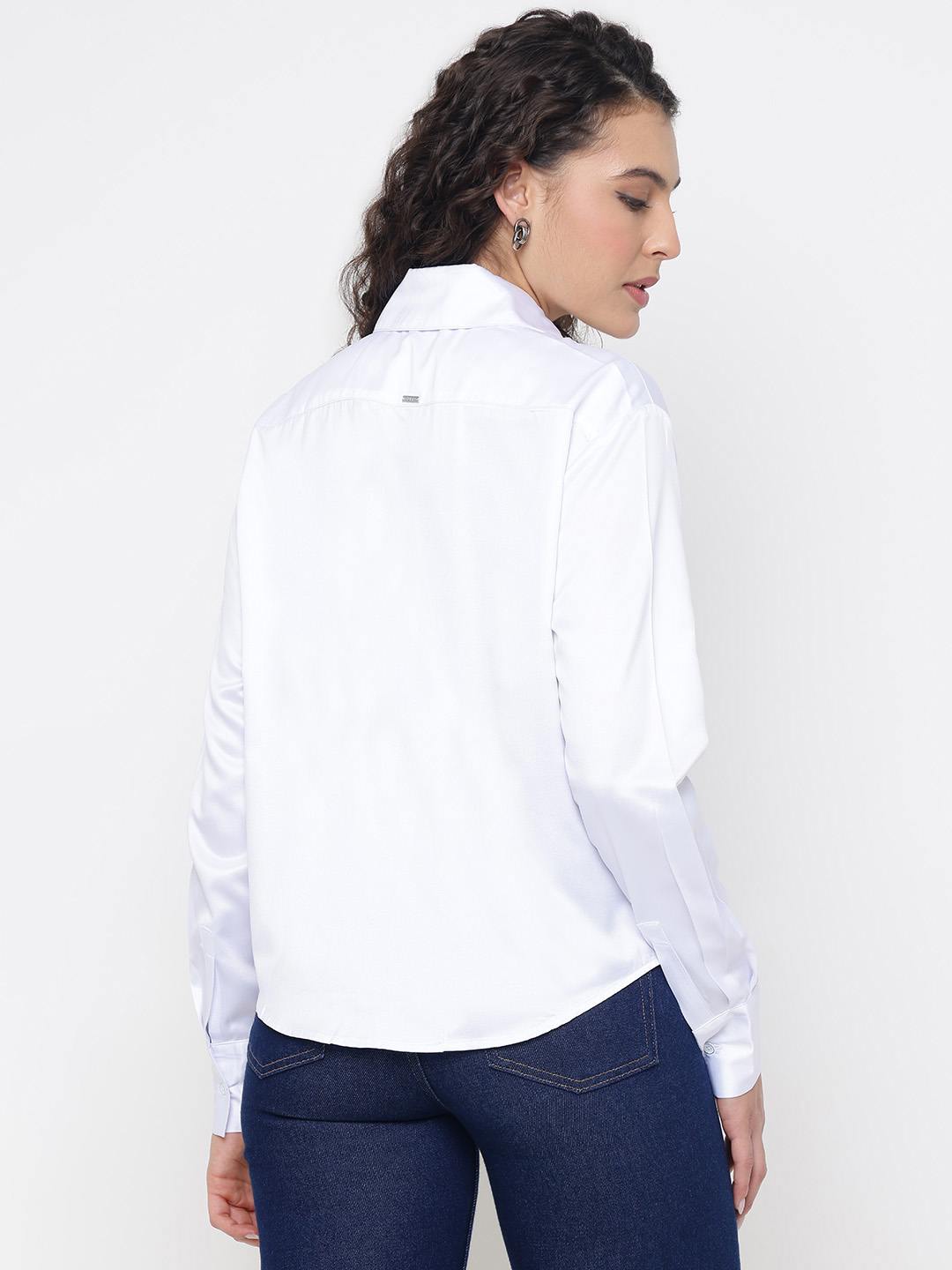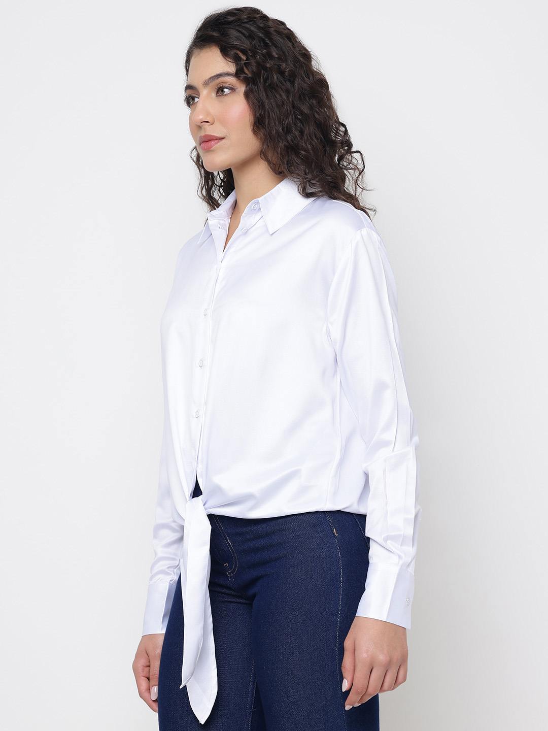 Anna Chic Look Soft Satin Pure White Solid Spread Collar Regular Fit Shirt