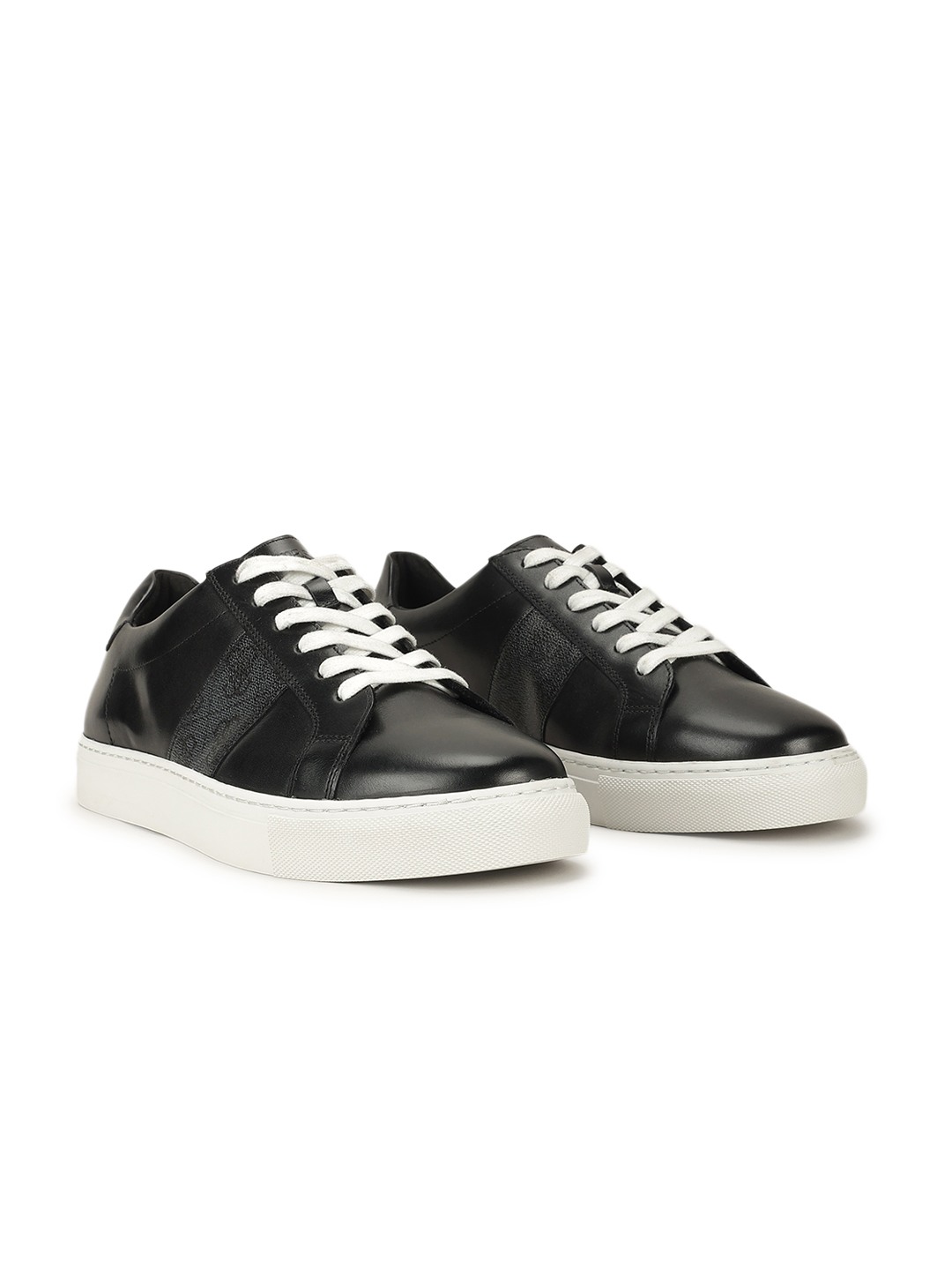 Step up your style game with our sleek black leather sneakers designed exclusively for men. Crafted from 100% premium leather, these sneakers offer a perfect blend of durability and sophistication. The striking striped pattern adds a modern twist to a classic design, making them a versatile choice for any occasion. Whether you're heading to the office or out for a casual weekend, these sneakers provide unmatched comfort and support. Elevate your footwear collection with a pair that promises both style and substance.