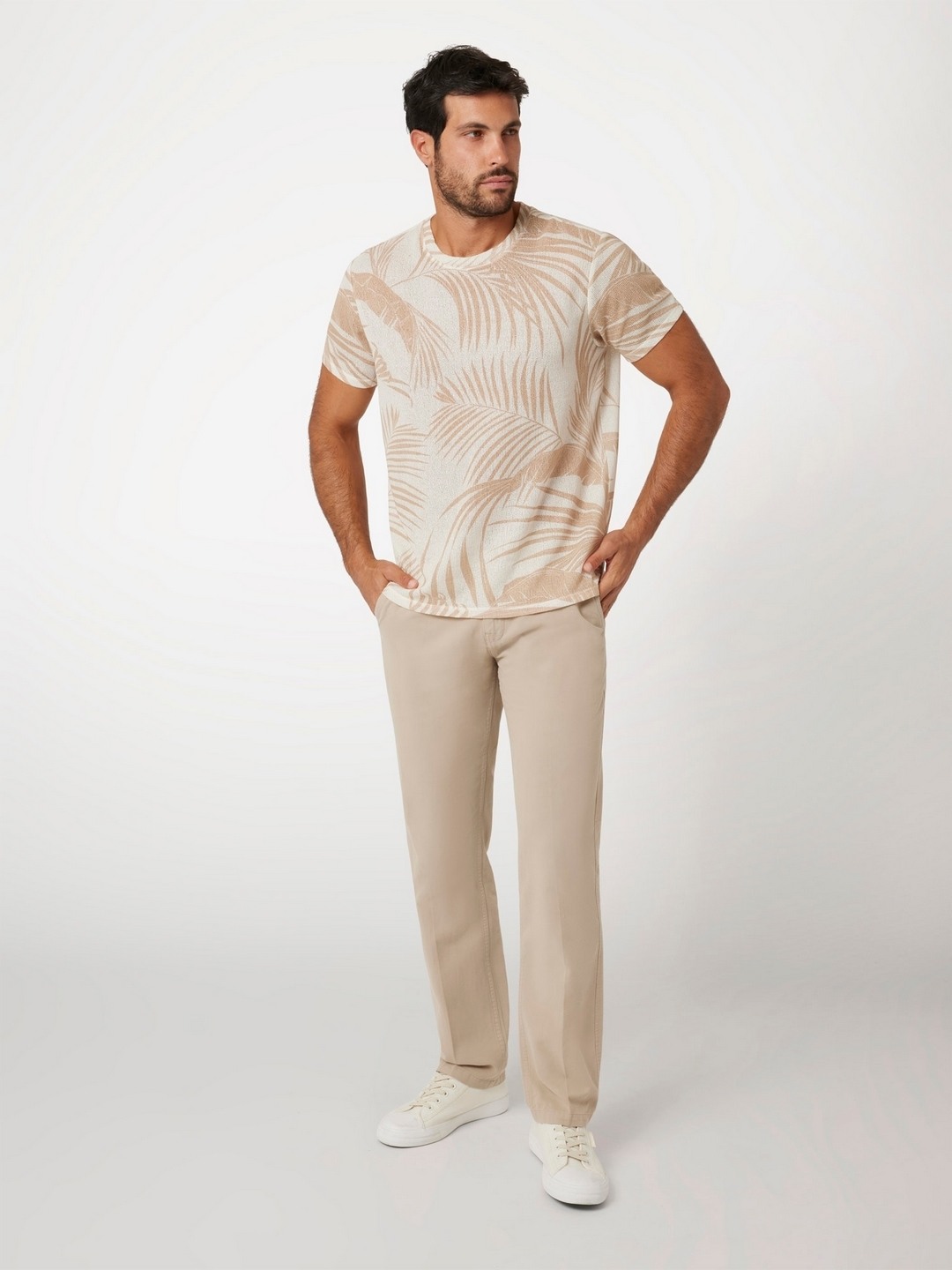 Baja Palm Pearl Leaf Round Neck Short Sleeves T-Shirt