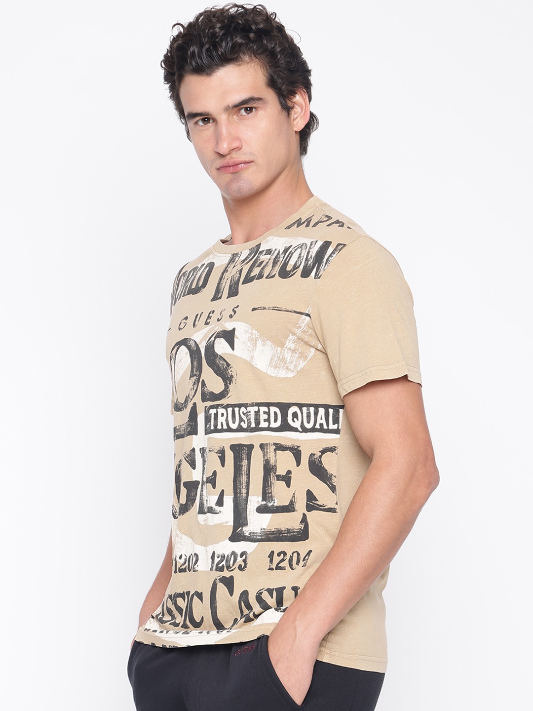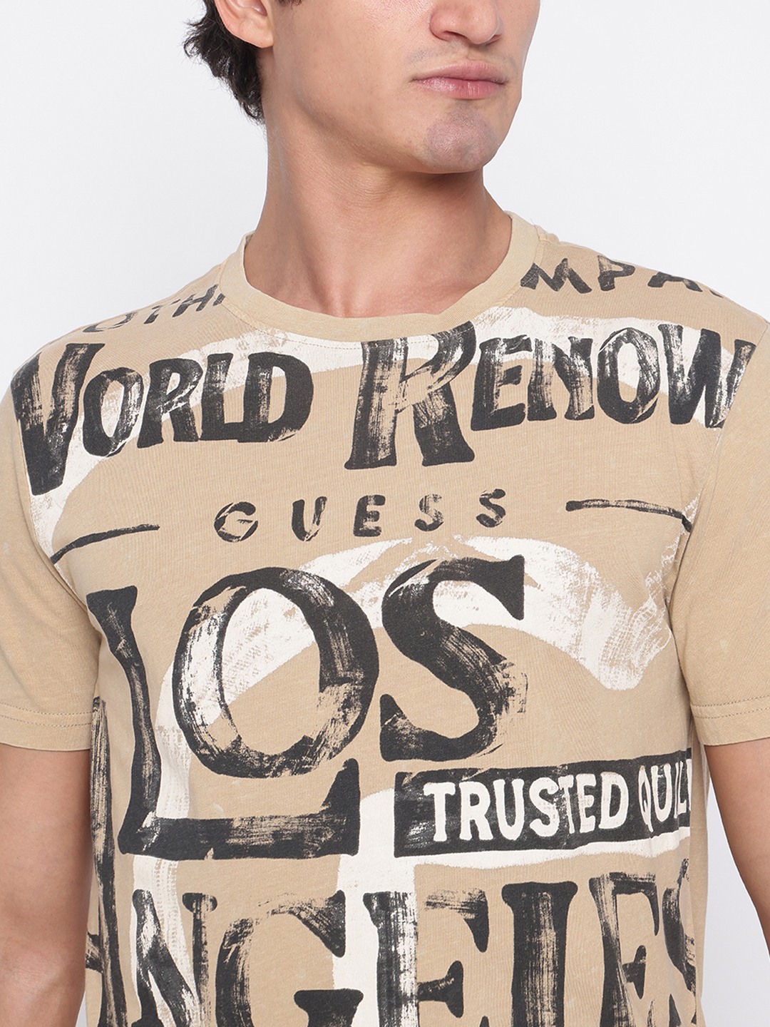 Elevate your casual wardrobe with our versatile beige T-shirt, designed for the modern man who values comfort and style. Crafted from 100% premium cotton, this tee offers a soft, breathable feel perfect for everyday wear. The regular fit ensures a flattering silhouette, while the classic crew neck and short sleeves provide timeless appeal. Featuring a unique printed pattern, this T-shirt adds a touch of personality to any outfit. With its easy slip-on closure, it's the ideal choice for effortless, laid-back fashion.