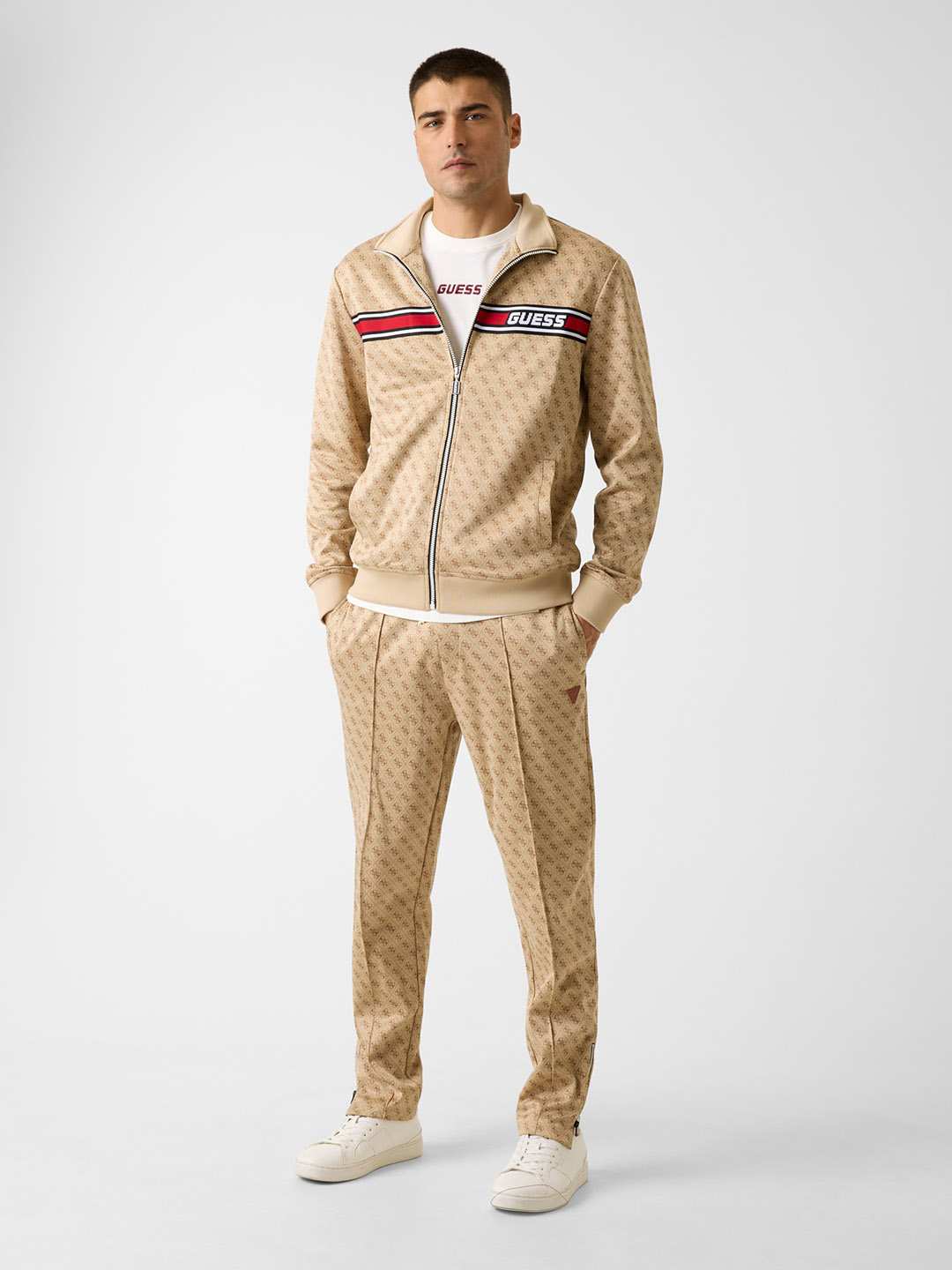 Elevate your casual wardrobe with these beige trackpants, crafted from a premium polycotton blend for ultimate comfort and durability. The regular fit ensures a relaxed yet stylish silhouette, perfect for any laid-back occasion. Featuring a unique printed pattern, these trackpants add a touch of modern flair to your ensemble. Whether you're lounging at home or heading out for a casual day, these trackpants offer the perfect blend of style and comfort, making them a versatile addition to any man's collection.