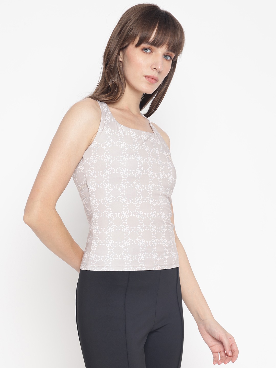 Elevate your wardrobe with our chic beige top, designed for the modern woman who values both style and comfort. This sleeveless piece features a timeless printed pattern that adds a touch of elegance to any outfit. The scoop neck design offers a flattering silhouette, while the regular fit ensures ease of movement. Crafted from a premium blend of 75% polyester and 25% elastane, it promises durability and a soft touch. The convenient pull-on closure makes it a versatile choice for any occasion.