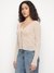 Beige Self Design V-Neck Amira Shiny Yarn Cardigans
