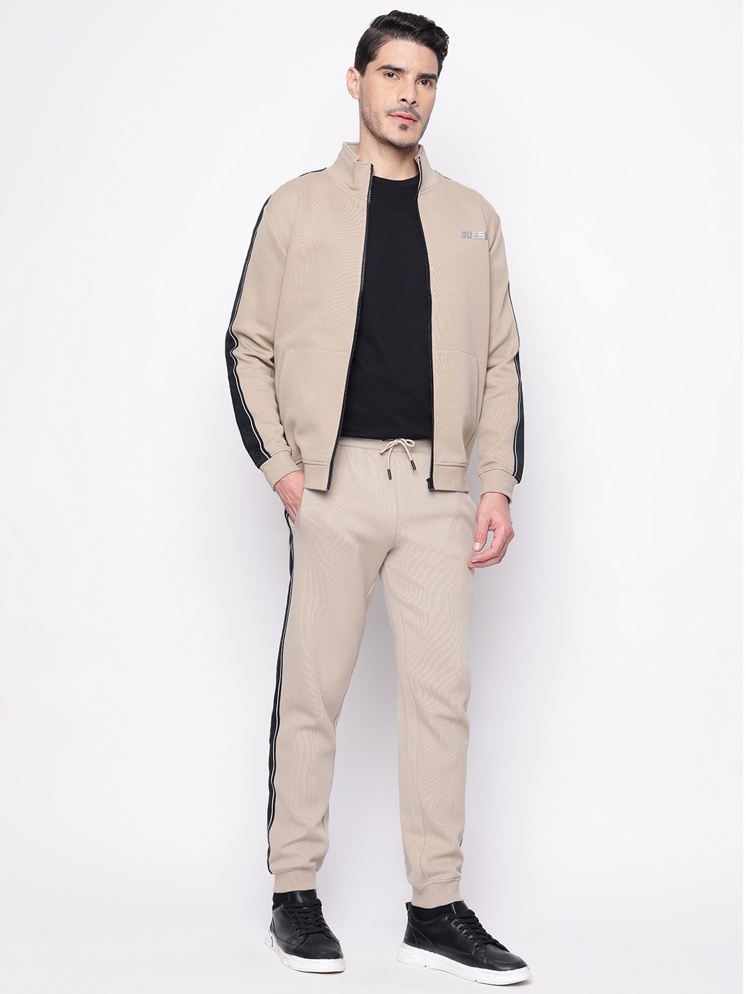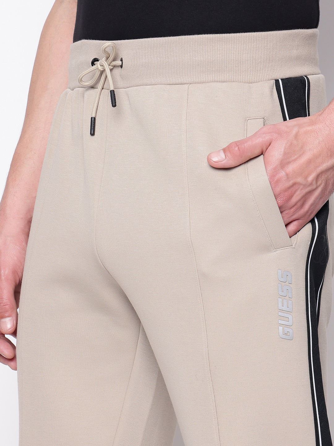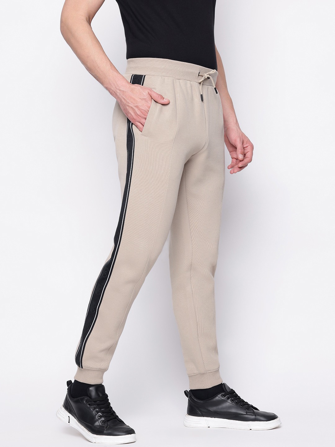 Experience unparalleled comfort and style with our beige trackpants, designed for the modern man. Crafted from a premium cotton blend, these regular-fit pants offer a perfect balance of breathability and durability. The subtle striped pattern adds a touch of sophistication, making them ideal for both casual outings and relaxed home wear. With an elastic waistband and adjustable drawstring, they ensure a snug fit, while the soft fabric promises all-day comfort. Elevate your wardrobe with this versatile essential.