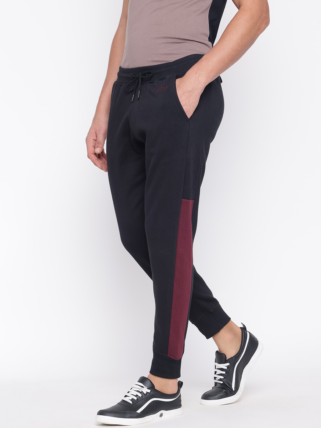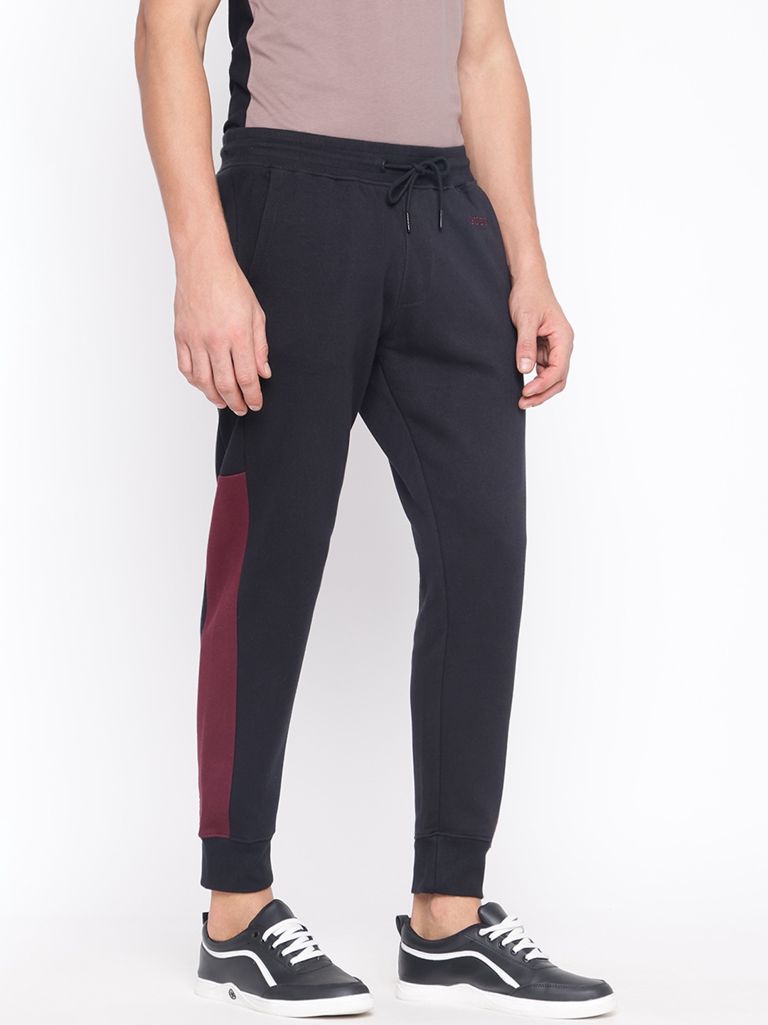 Discover the perfect blend of style and comfort with our black colorblocked joggers for men. Crafted from a premium 60% cotton and 40% polyester fabric, these joggers offer a soft touch and durable wear. The mid-rise design ensures a flattering fit, while the drawstring closure provides adjustable comfort for any activity. Ideal for casual outings or relaxed days at home, these joggers effortlessly combine functionality with a modern aesthetic. Elevate your wardrobe with this versatile essential that pairs well with any top.