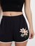 Black Embroidered Relaxed Fit Zoey Dobby Piquet Shorts