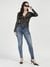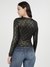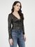 Black Gun Metal Printed V-Neck Full Sleeve Gathered Amelie Top