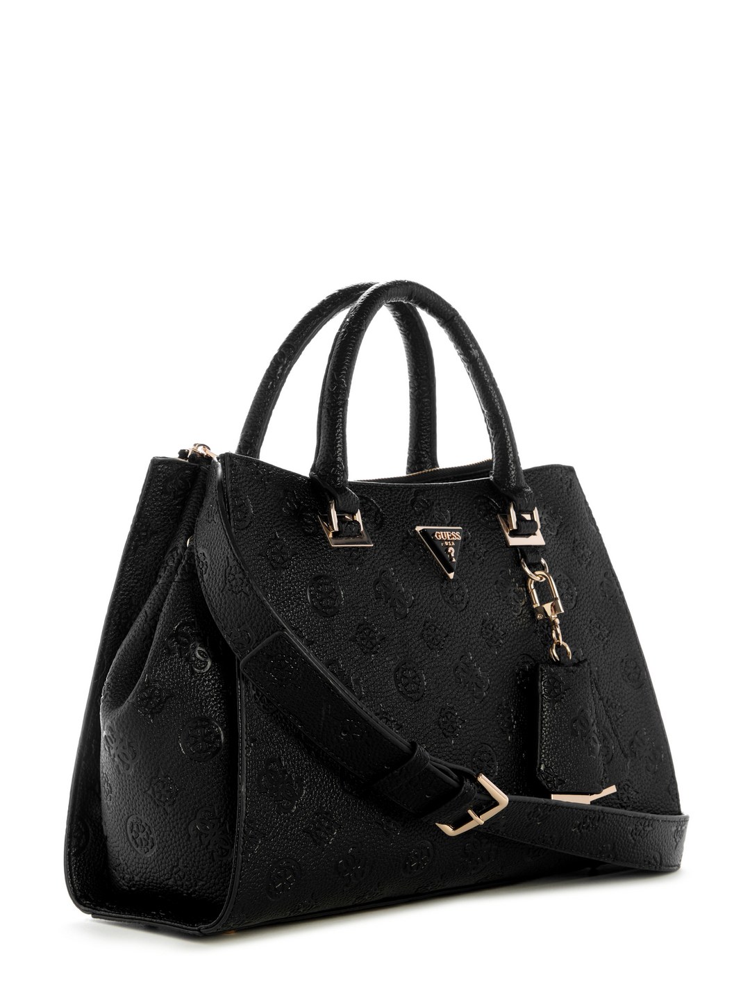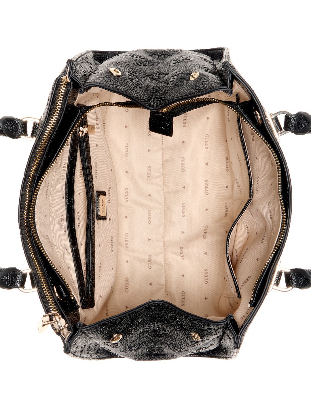 Discover elegance with our black satchel bag crafted from 100% PU fabric. Featuring an embossed logo pattern, this stylish accessory is perfect for the modern woman. Its spacious interior and sleek design make it ideal for daily use or special occasions. Elevate your wardrobe with this versatile and chic satchel bag.