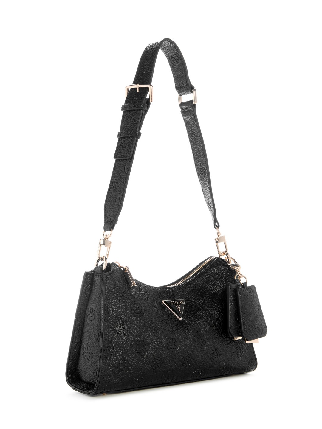 Discover elegance with our black shoulder bag crafted from 100% PU fabric. Featuring an embossed logo pattern, this stylish accessory offers both sophistication and practicality. Perfect for any occasion, it provides ample space for essentials while maintaining a sleek silhouette. Elevate your wardrobe with this timeless piece designed for the modern woman.