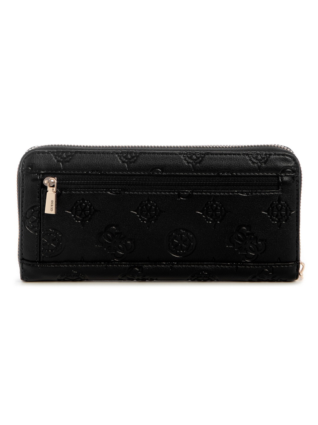 Black Logo Embossed Monogram Laurel Large Zip Around Wallet