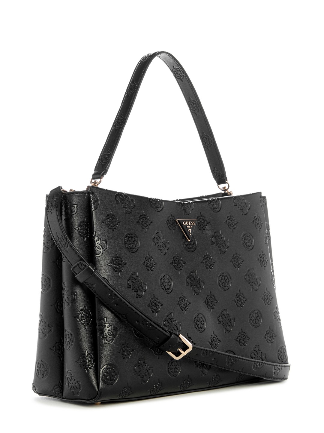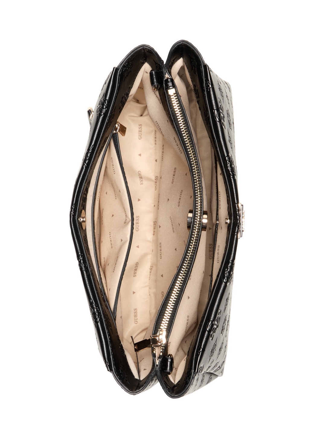 Discover elegance with our black satchel bag crafted from 100% PU fabric. Featuring an embossed logo pattern, this stylish accessory is perfect for the modern woman. Its spacious interior and sleek design make it ideal for daily use or special occasions. Elevate your wardrobe with this versatile and chic satchel bag.