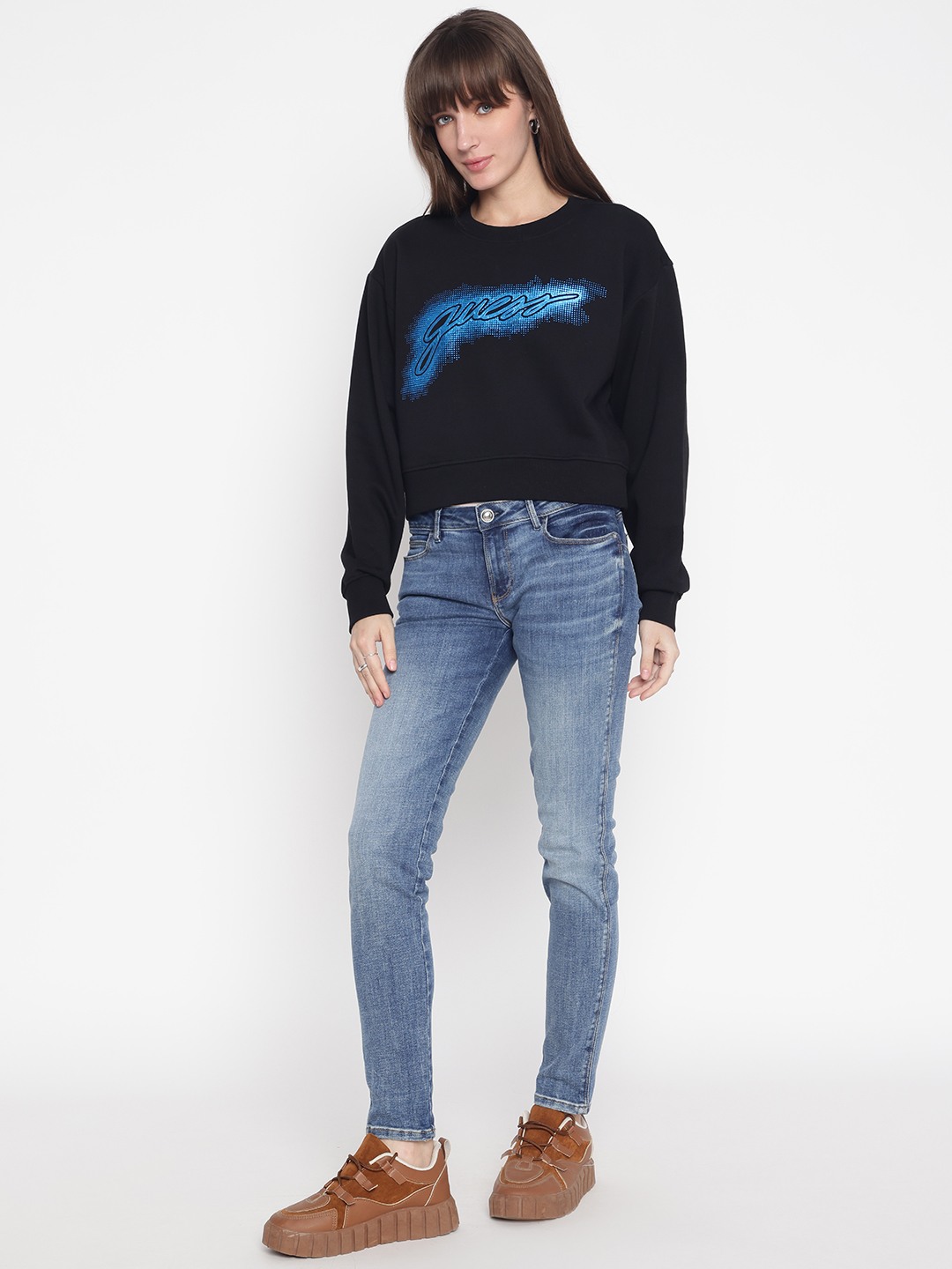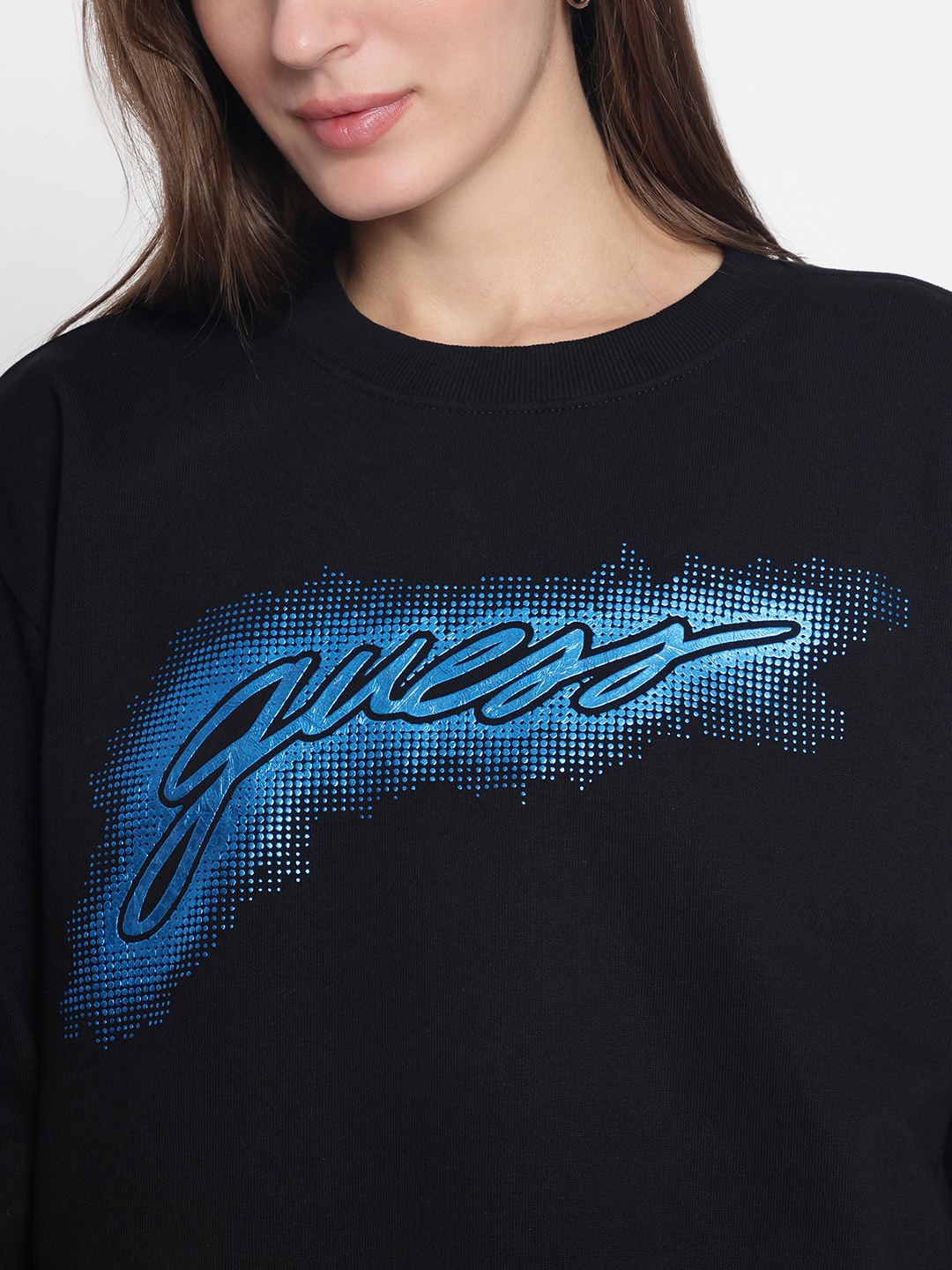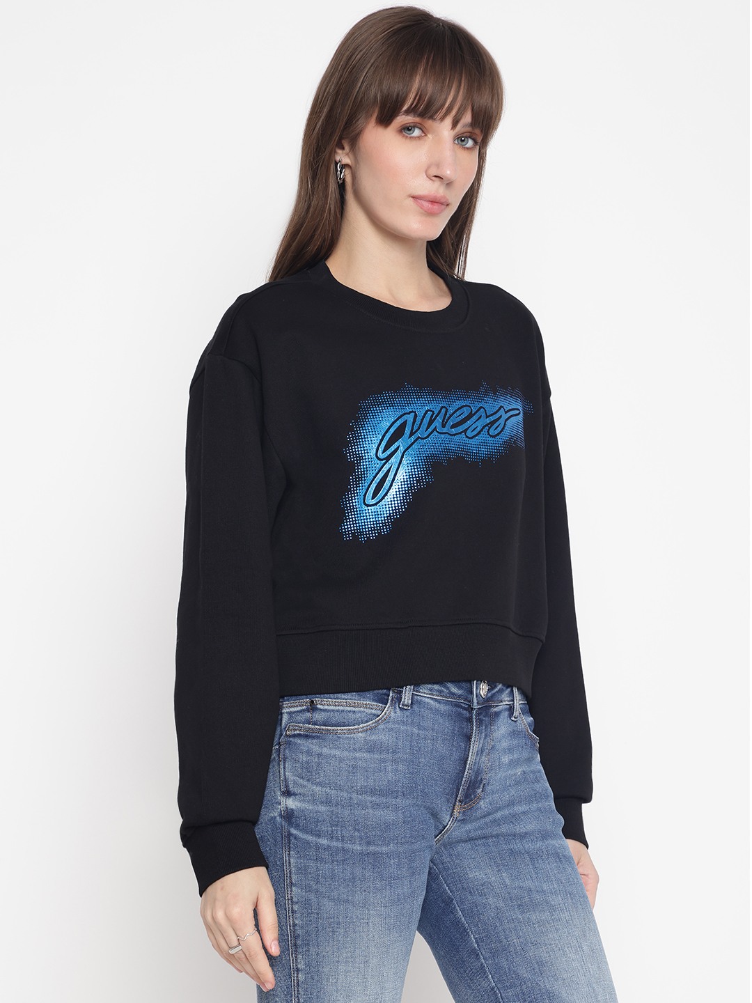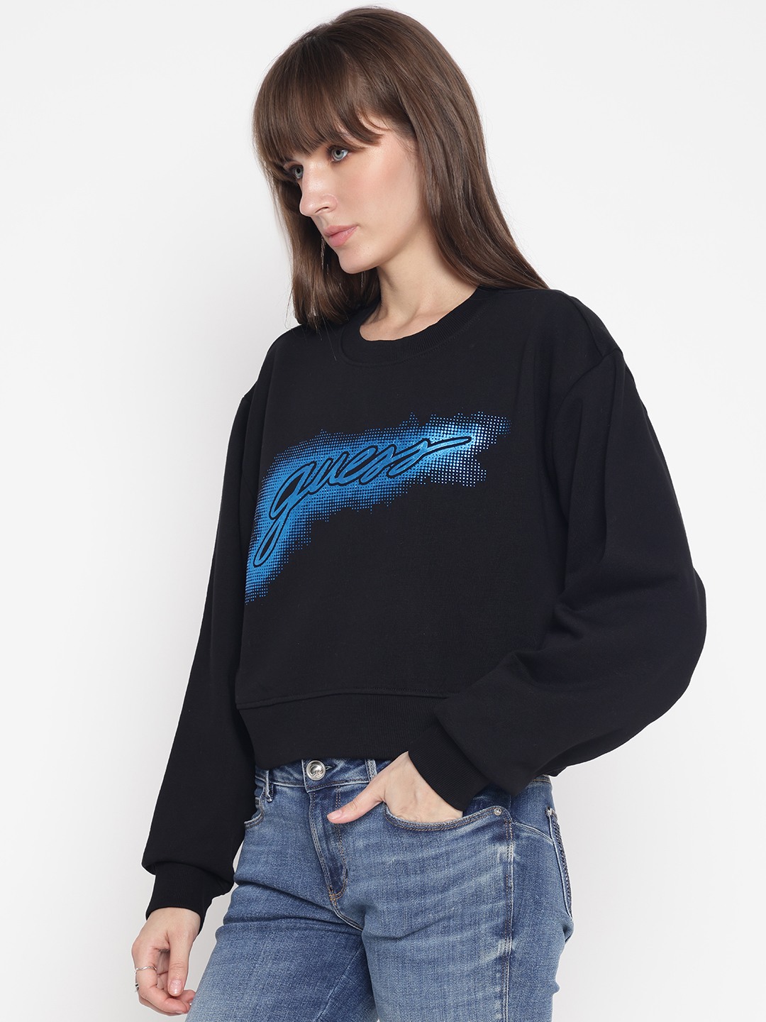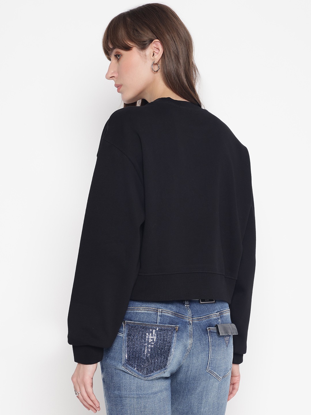 Elevate your casual wardrobe with our chic black sweatshirt, designed for the modern woman who values both comfort and style. This regular-fit piece features a trendy printed pattern that adds a touch of flair to any outfit. Crafted from 100% premium cotton, it promises softness and breathability, making it perfect for all-day wear. The full sleeves and classic crew neck offer a timeless silhouette, while the convenient pull-on closure ensures effortless dressing. Ideal for any occasion, this sweatshirt is a must-have staple.