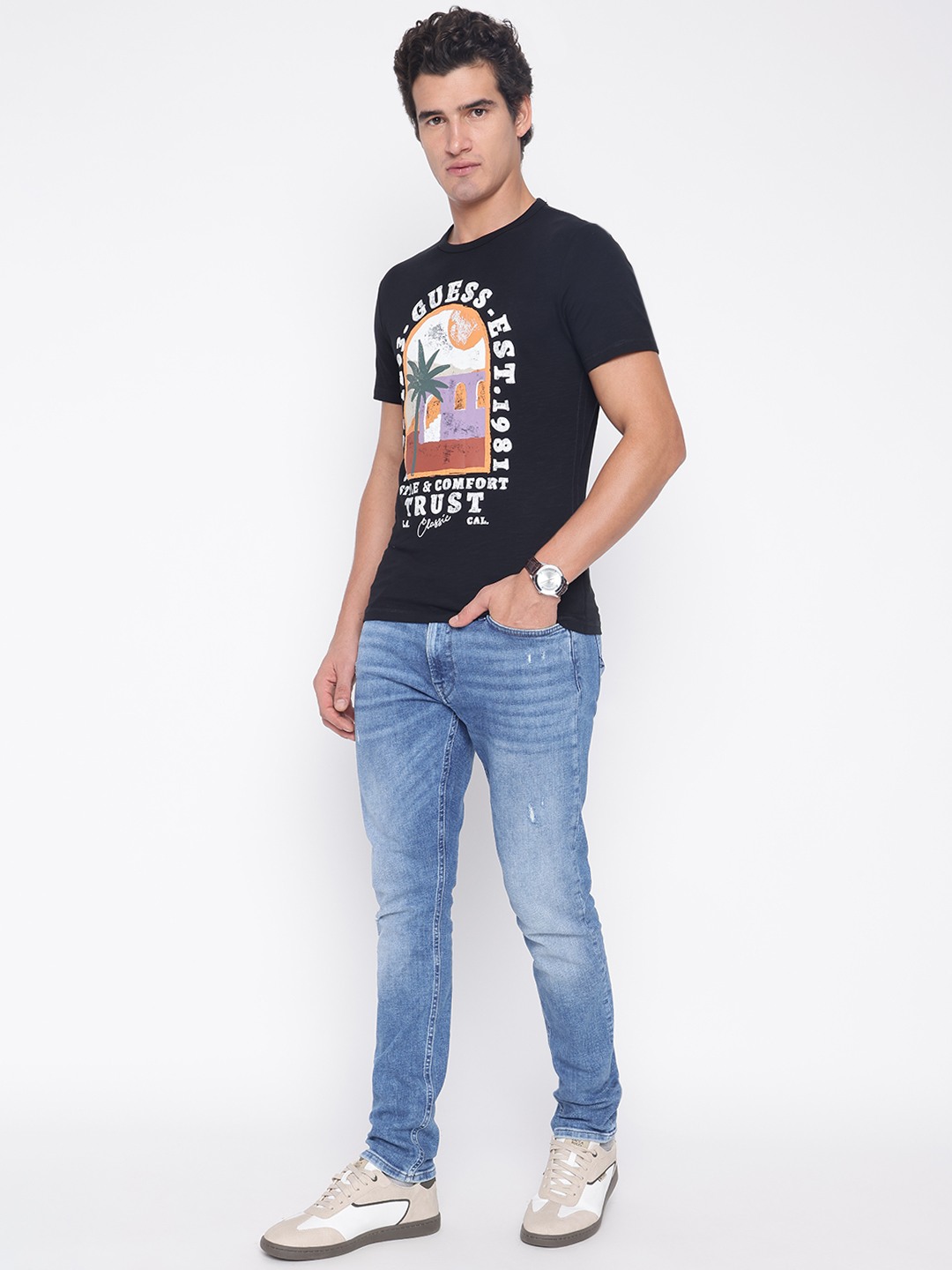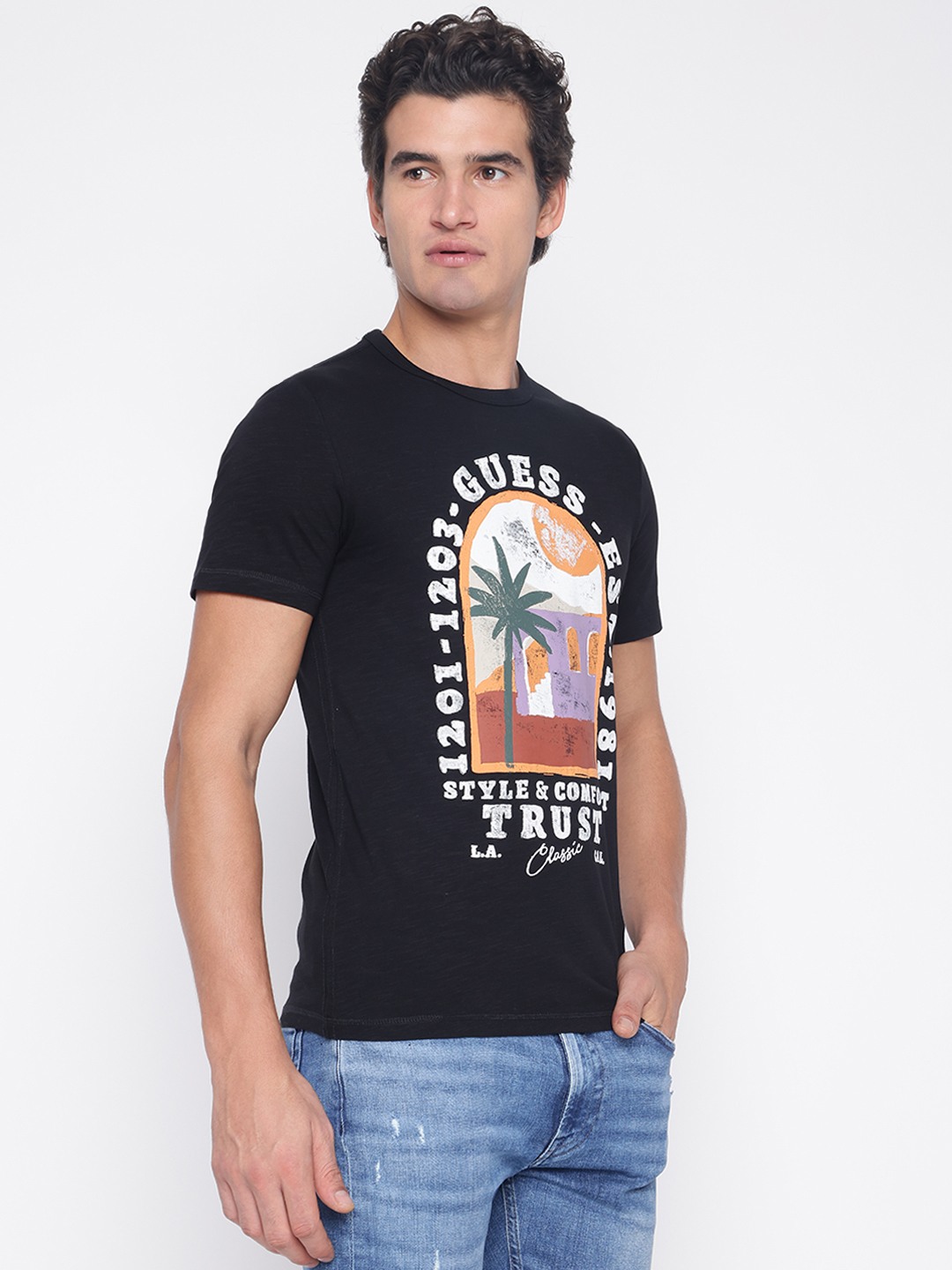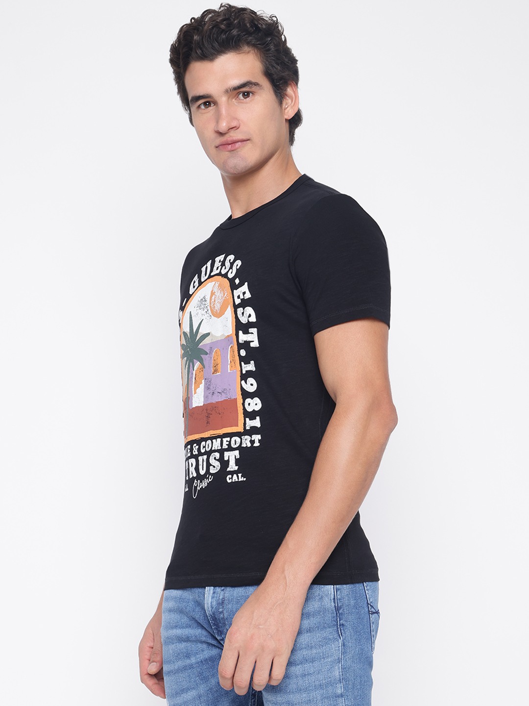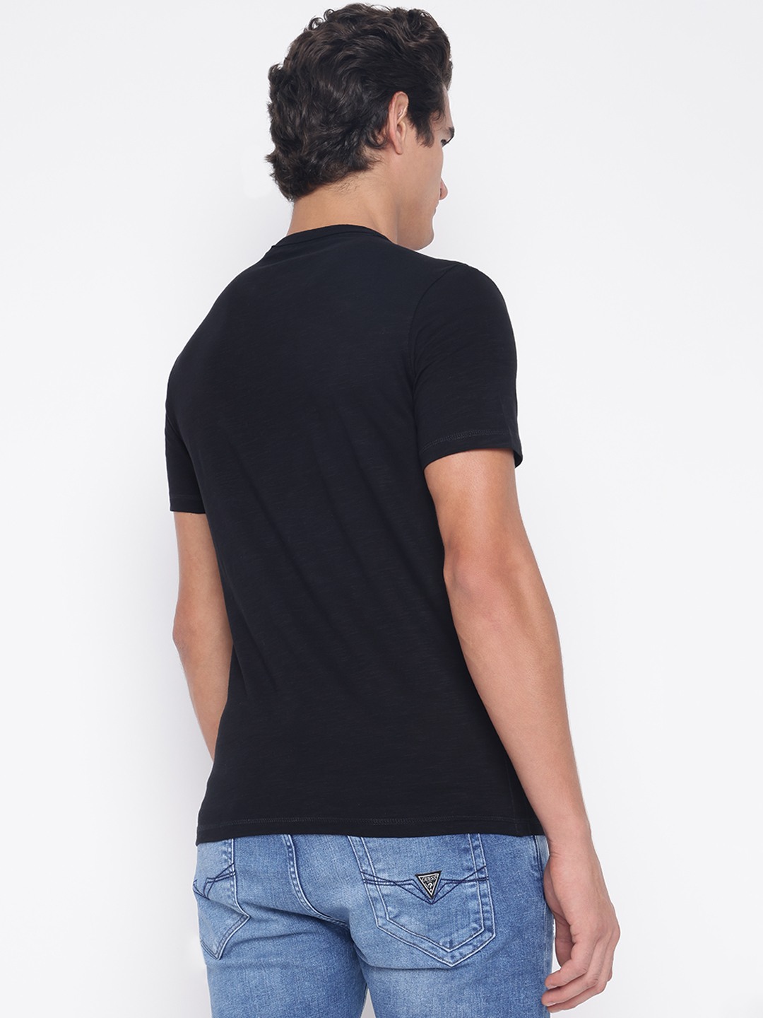 Elevate your casual wardrobe with our classic black T-shirt, designed for the modern man who values both style and comfort. This regular-fit tee features a striking printed pattern that adds a touch of personality to any outfit. Crafted from 100% premium cotton, it offers breathability and softness for all-day wear. The short sleeves and crew neck provide a timeless silhouette, while the slip-on closure ensures effortless dressing. Perfect for any occasion, this T-shirt is a versatile staple you'll reach for time and again.