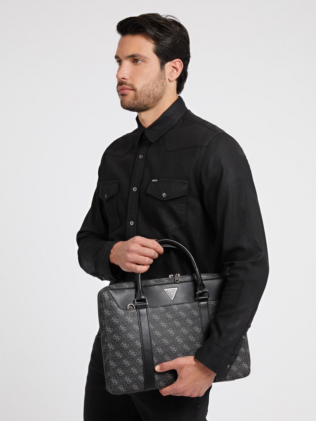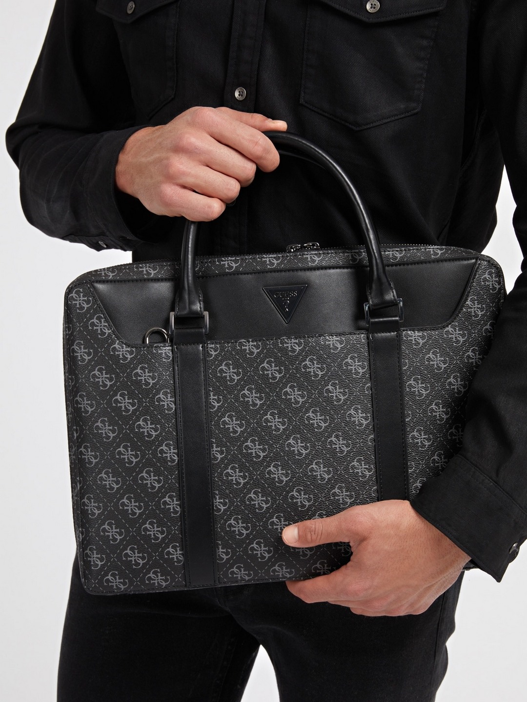 Black Printed PU Laptop Bag