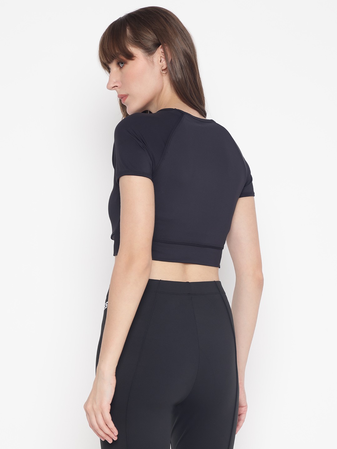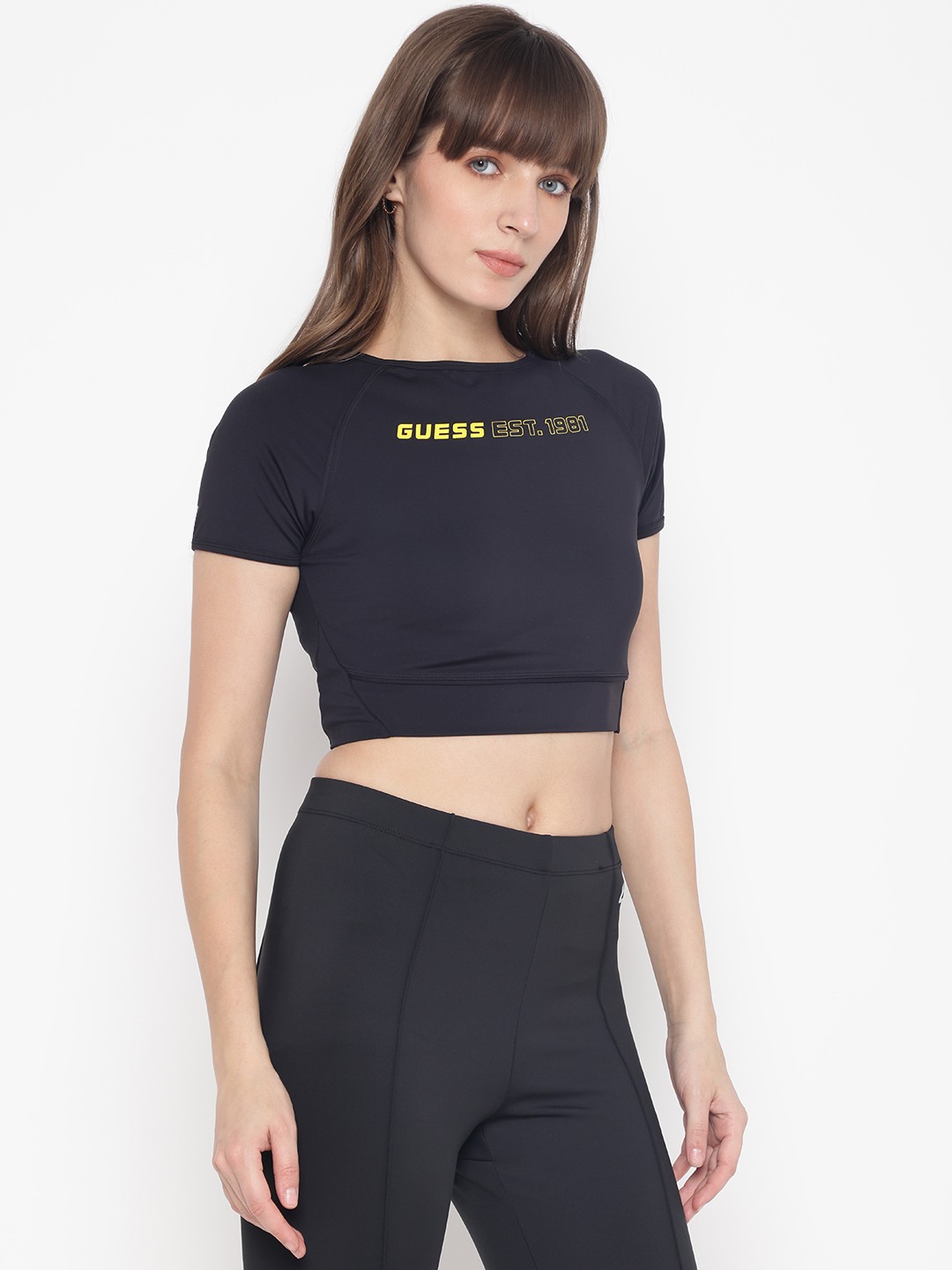 Elevate your wardrobe with our chic black crop top, designed for the modern woman who loves a blend of comfort and style. This regular-fit top features a trendy printed pattern that adds a touch of flair to any outfit. Crafted from a premium blend of 76% polyester and 24% elastane, it offers a soft, stretchy feel that moves with you. The short sleeves and classic round neckline make it perfect for layering or wearing solo. With a convenient pull-on closure, it's your go-to piece for effortless fashion.
