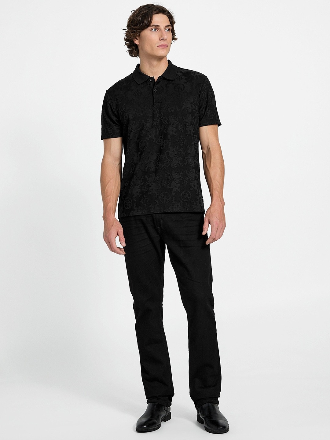 Elevate your casual style with this sleek black polo T-shirt, crafted for the modern man. Featuring a timeless self-design pattern, it exudes subtle sophistication. The regular sleeves and classic polo neck offer a perfect fit, while the short sleeves keep you cool and comfortable. Made from high-quality polyester, it combines durability with a soft touch. Versatile and stylish, this T-shirt seamlessly transitions from casual outings to semi-formal gatherings, making it a must-have in your wardrobe.