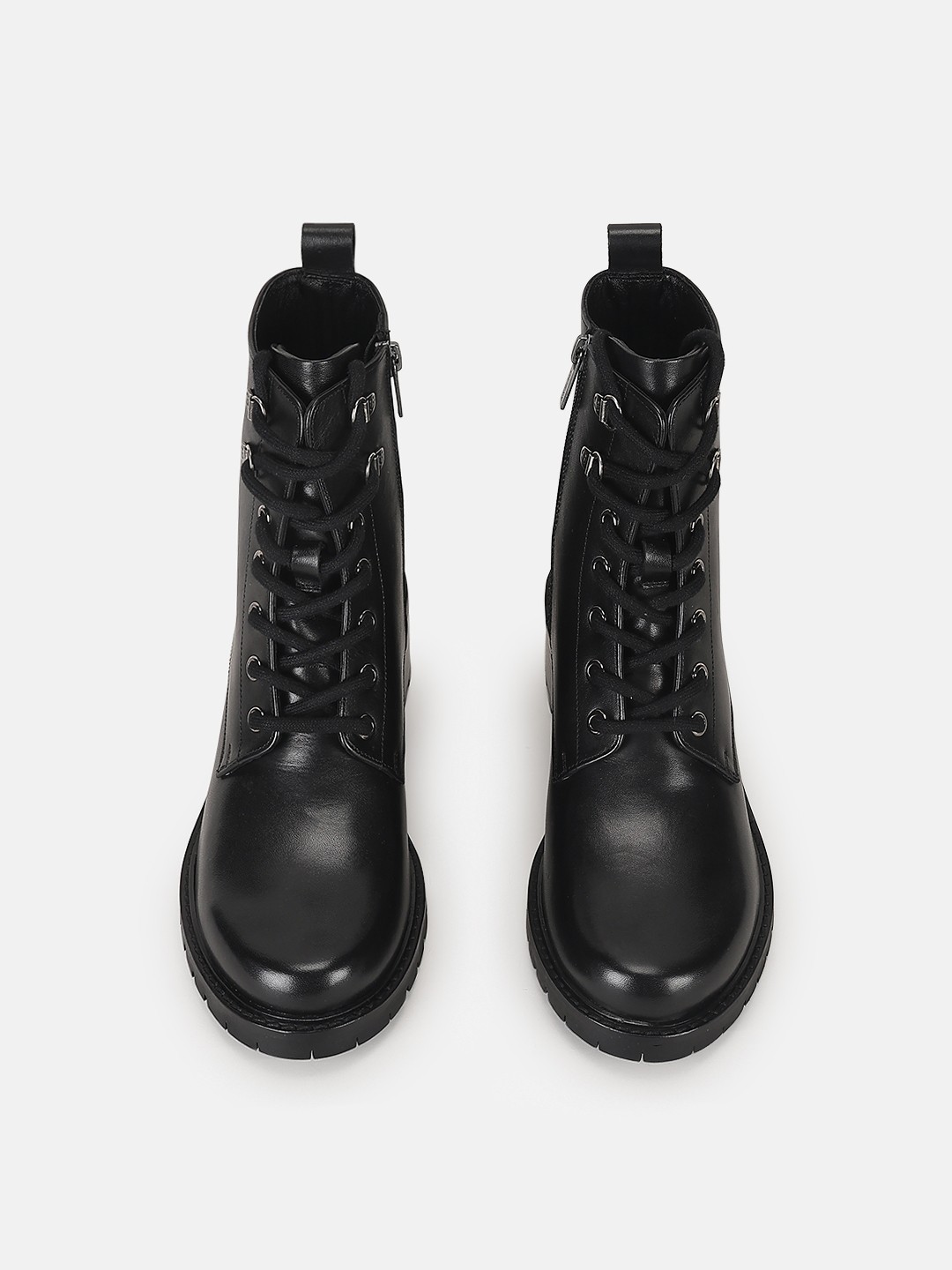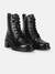 Step into style and comfort with Anfibio Boots in black leather designed exclusively for women. These boots feature a sleek solid pattern that effortlessly complements any outfit from casual to chic. Crafted with premium leather they offer durability and a luxurious feel. The classic black color adds a touch of elegance making them versatile for any occasion. With a comfortable fit and sturdy sole these boots are perfect for all-day wear. Elevate your wardrobe with Anfibio Boots where fashion meets function.
