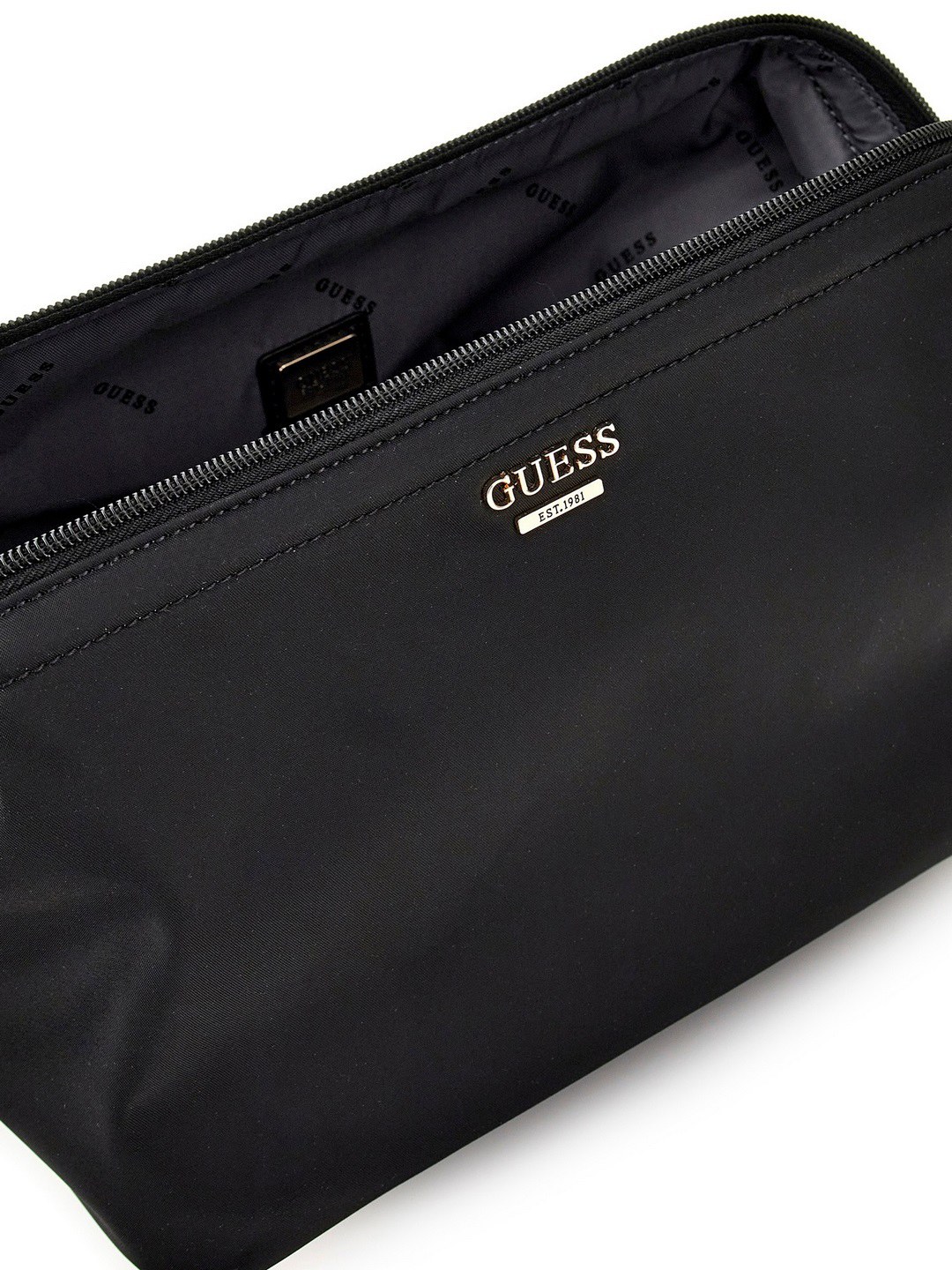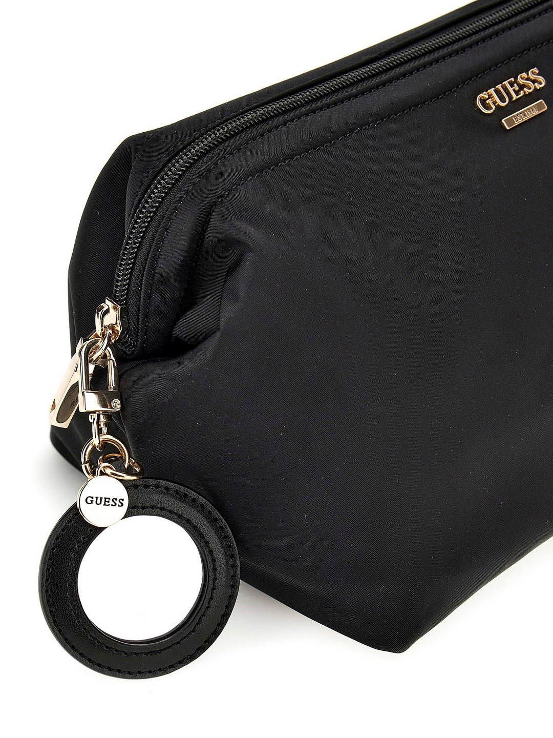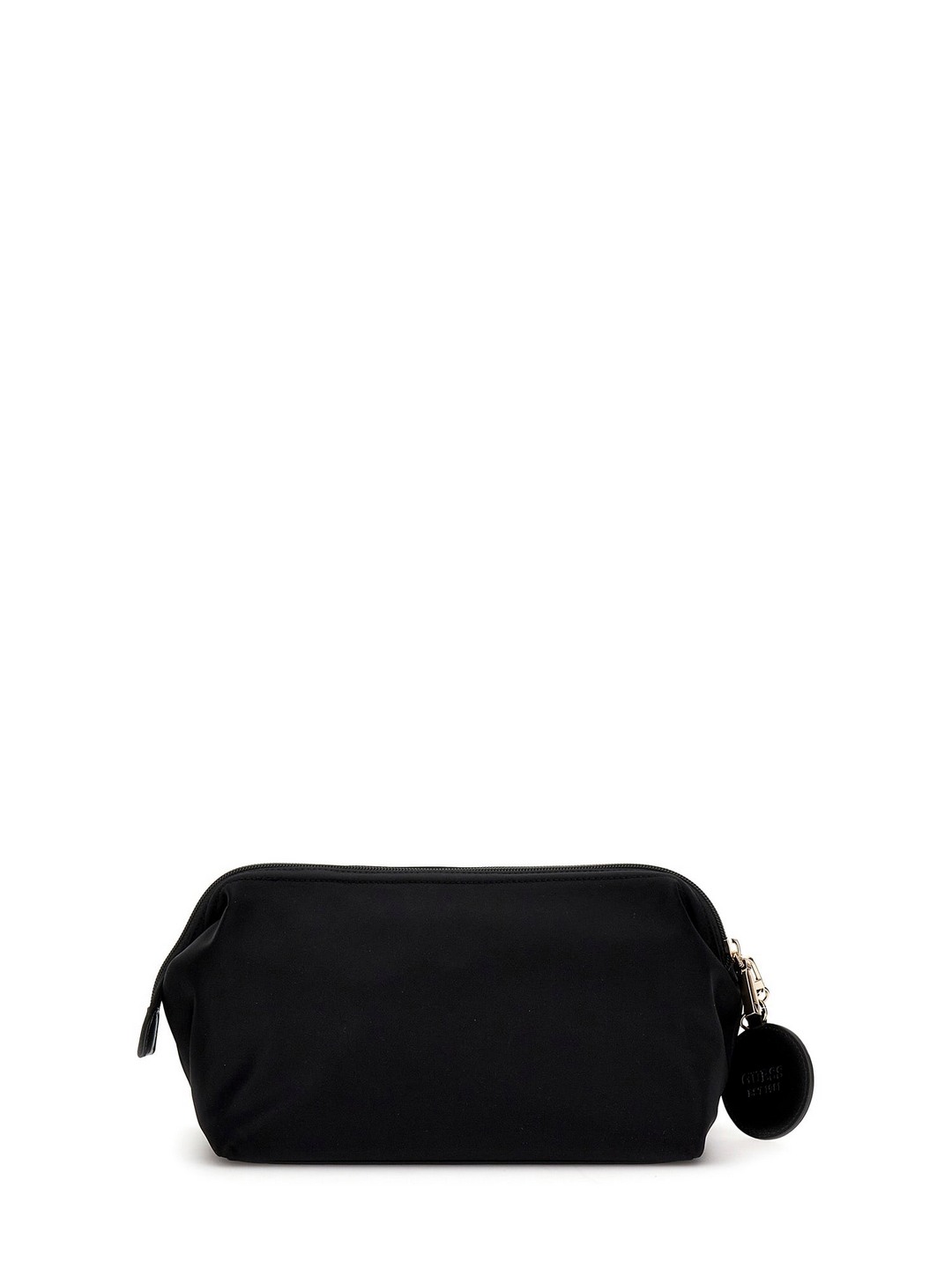 This sleek and stylish pouch is the perfect accessory for any woman on the go. Crafted from durable nylon fabric, this pouch is both lightweight and water-resistant, making it ideal for carrying your essentials. The solid black color provides a timeless and versatile look that complements any outfit. With its spacious interior, this pouch can easily accommodate your phone, wallet, keys, and other small items. The zipper closure ensures that your belongings are secure and protected. Whether you're heading to the gym, running errands, or traveling, this pouch is the perfect way to keep your essentials organized and within reach.