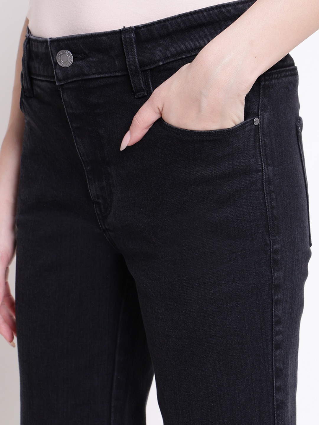 These sexy straight denim jeans in black are perfect for women seeking a stylish and comfortable fit. Designed with a regular fit and high rise, they offer a flattering silhouette for any occasion. The solid pattern adds a classic touch, while the button closure ensures easy wear. Made from soft, durable cotton fabric, these jeans provide all-day comfort and breathability. Versatile and timeless, they can be paired with various tops and footwear to create chic, effortless looks.