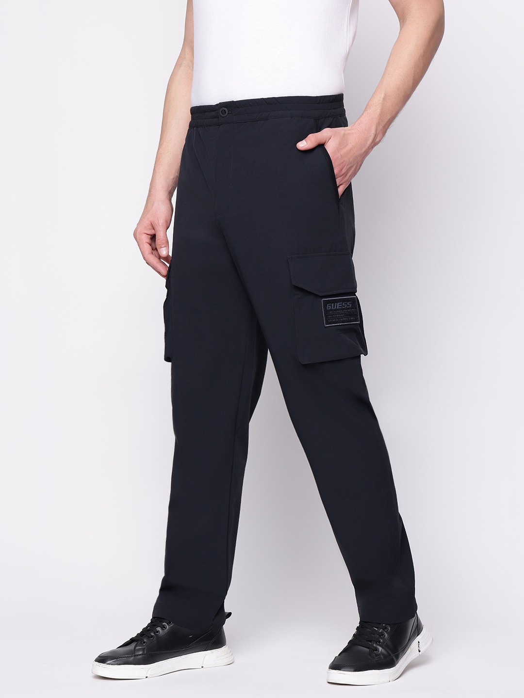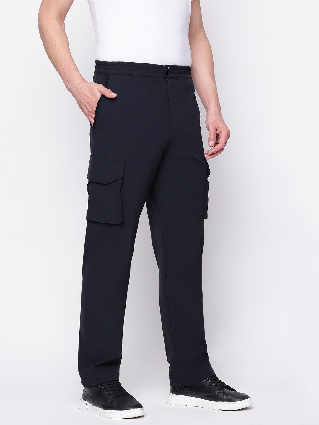 Experience unparalleled comfort and style with our black trackpants, crafted from premium polyamide fabric. Designed for the modern man, these regular-fit trackpants offer a sleek silhouette while ensuring maximum flexibility and breathability. The solid pattern exudes a timeless appeal, making them perfect for both casual outings and intense workouts. With an elastic waistband and adjustable drawstring, they promise a personalized fit. Elevate your athleisure wardrobe with this essential piece.