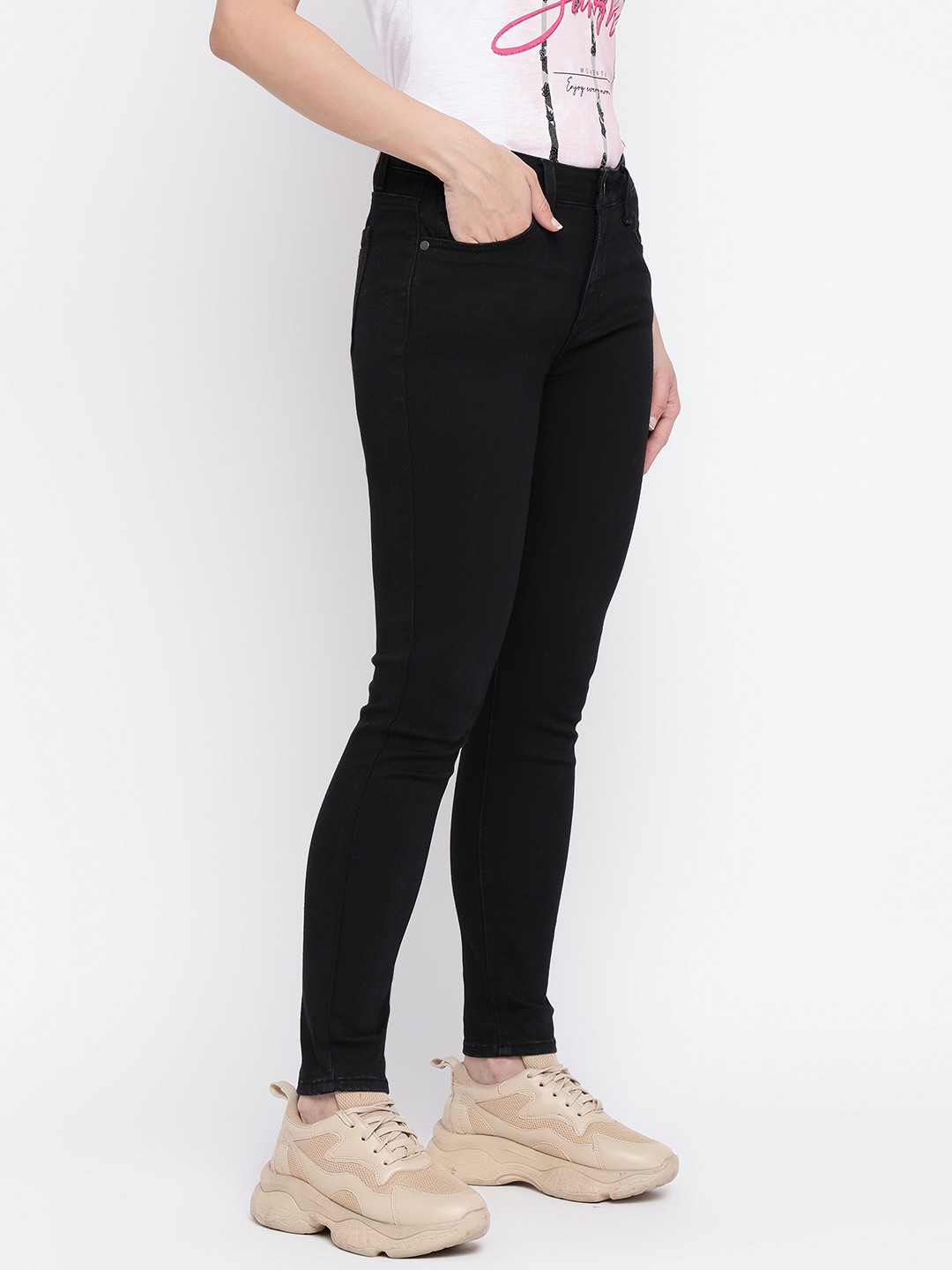 Discover the perfect blend of style and comfort with our black skinny fit jeans for women. Crafted from a premium fabric mix of 99% cotton and 1% elastane, these jeans offer a snug yet flexible fit that moves with you. The mid-rise design provides a flattering silhouette, while the solid pattern ensures a sleek, versatile look suitable for any occasion. Featuring a classic button closure, these jeans are easy to wear and pair effortlessly with your favorite tops and shoes. Elevate your wardrobe with this essential piece.