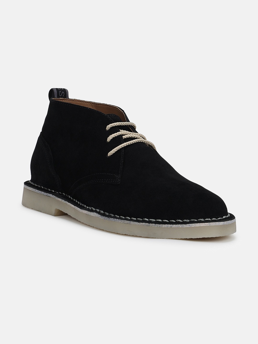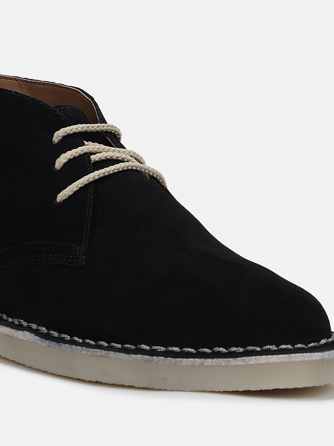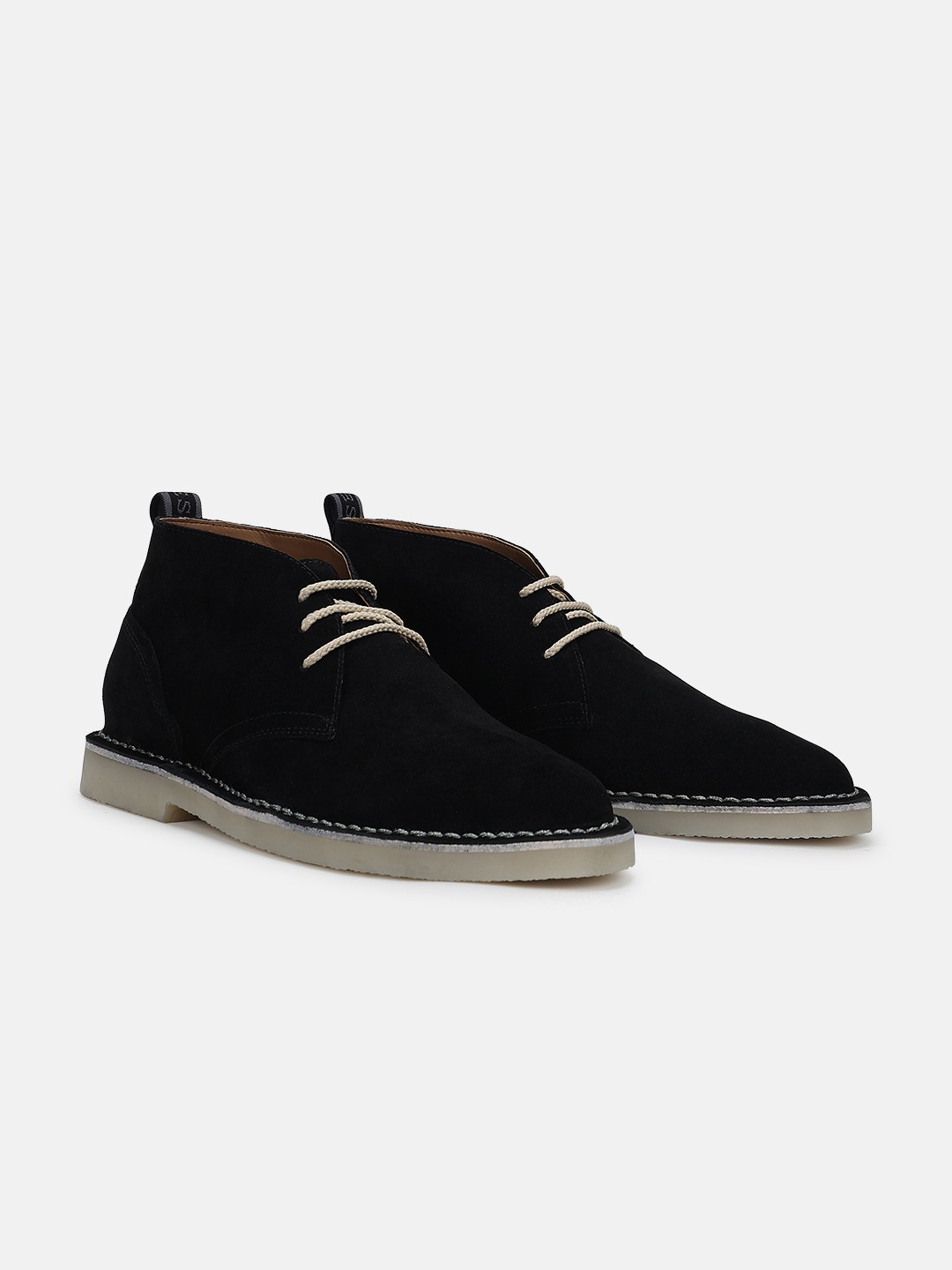 Step into timeless style with our black suede chukka boots, crafted for the modern man who values both elegance and comfort. These boots feature a sleek leather fabric with a solid pattern, offering a versatile addition to any wardrobe. Designed with a classic silhouette, they seamlessly blend with both casual and formal attire, making them perfect for any occasion. The soft suede material ensures a comfortable fit, while the durable sole provides excellent traction and support. Whether you're heading to the office or out for a weekend adventure, these chukka boots deliver a sophisticated touch to your ensemble. The understated black color adds a touch of refinement, allowing you to pair them effortlessly with jeans, chinos, or tailored trousers. Experience the perfect balance of style and functionality with these must-have boots, designed to elevate your footwear collection and keep you looking sharp all day long.