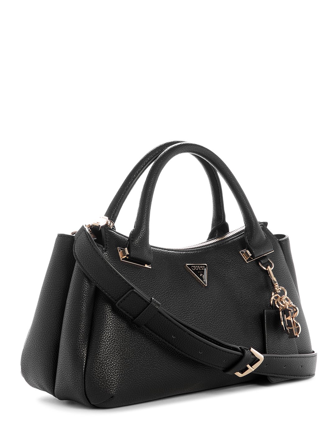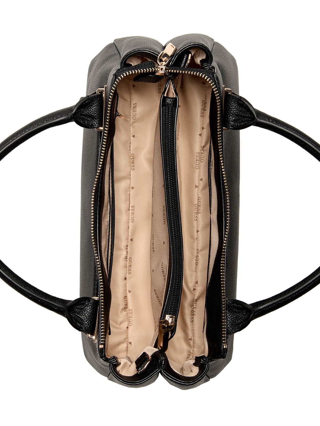 Black Solid Zipper Evie Triple Compartment Satchel Bag