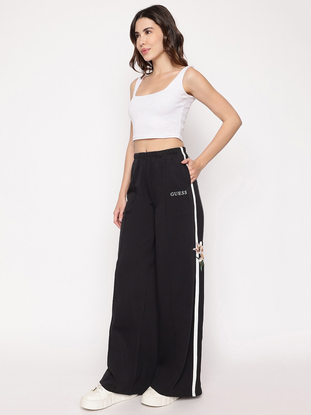 These comfortable and stylish track pants are perfect for workouts, lounging, or running errands. Made from breathable and moisture-wicking fabric, they offer a relaxed fit with a tapered leg for a flattering look. Featuring a drawstring waistband and side pockets for added convenience.