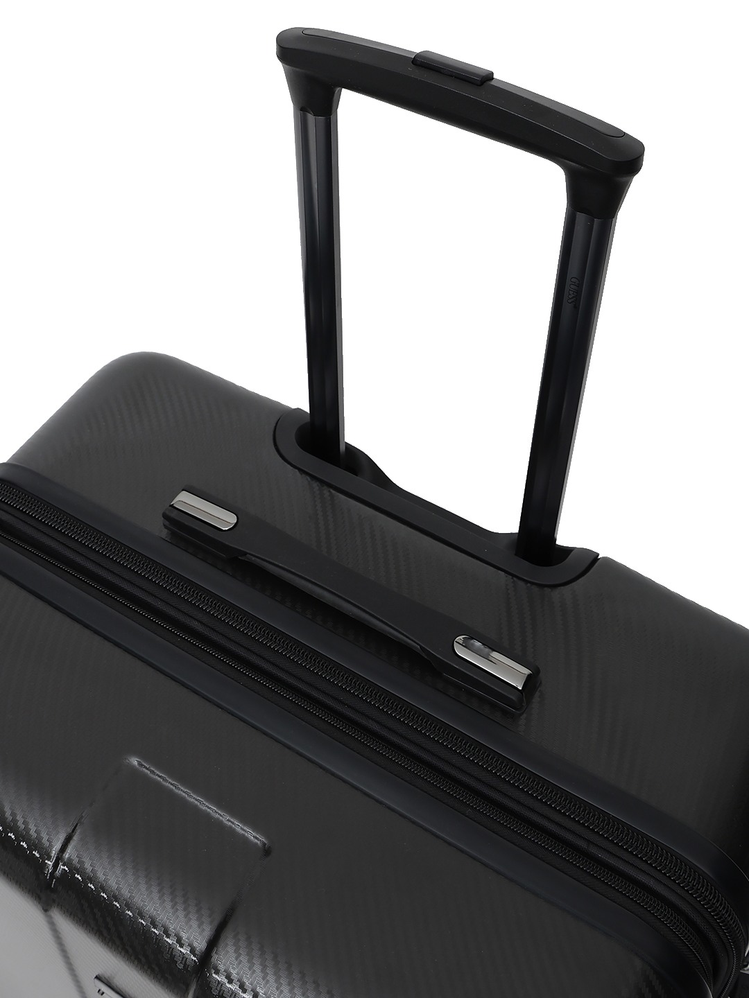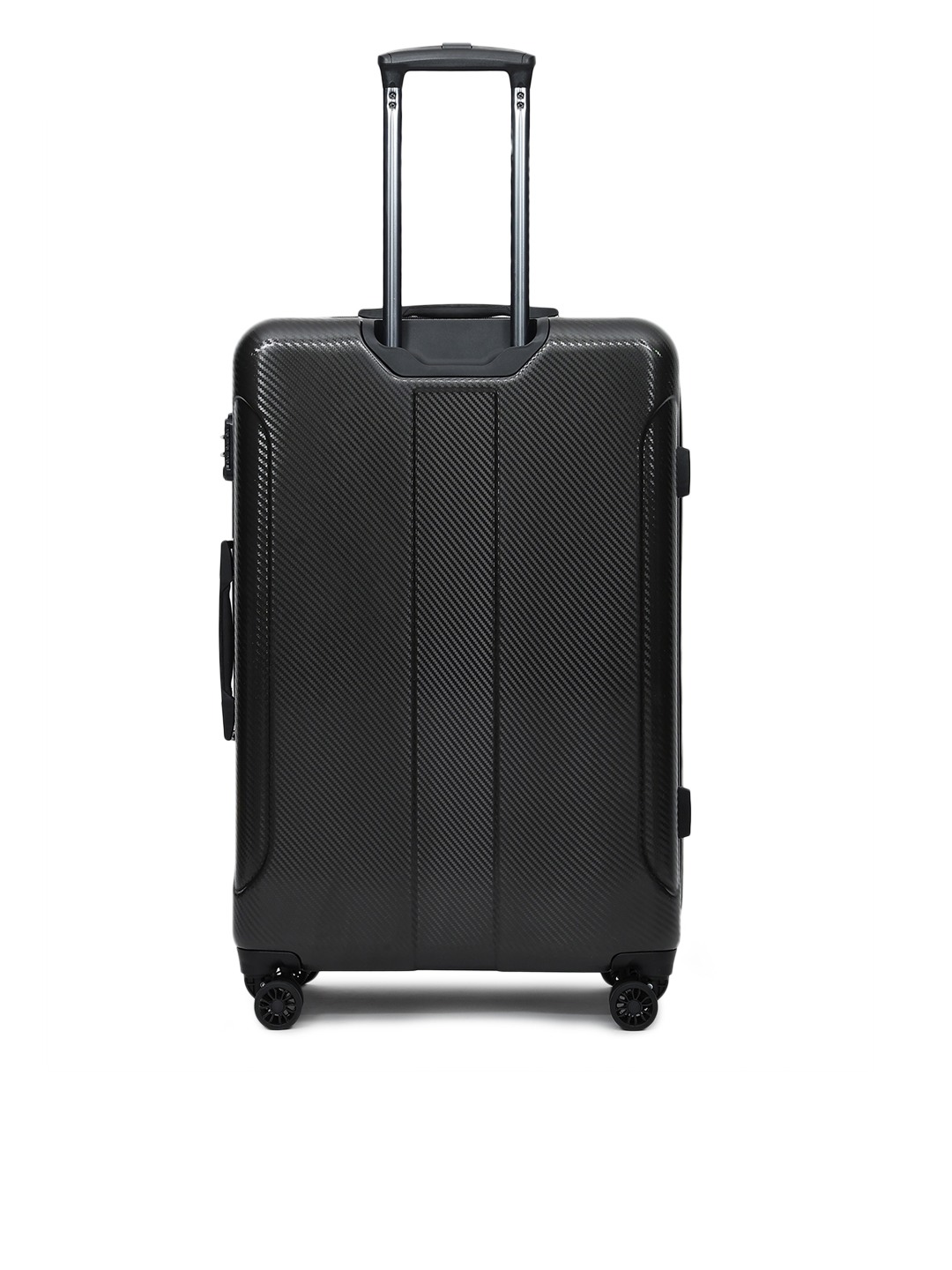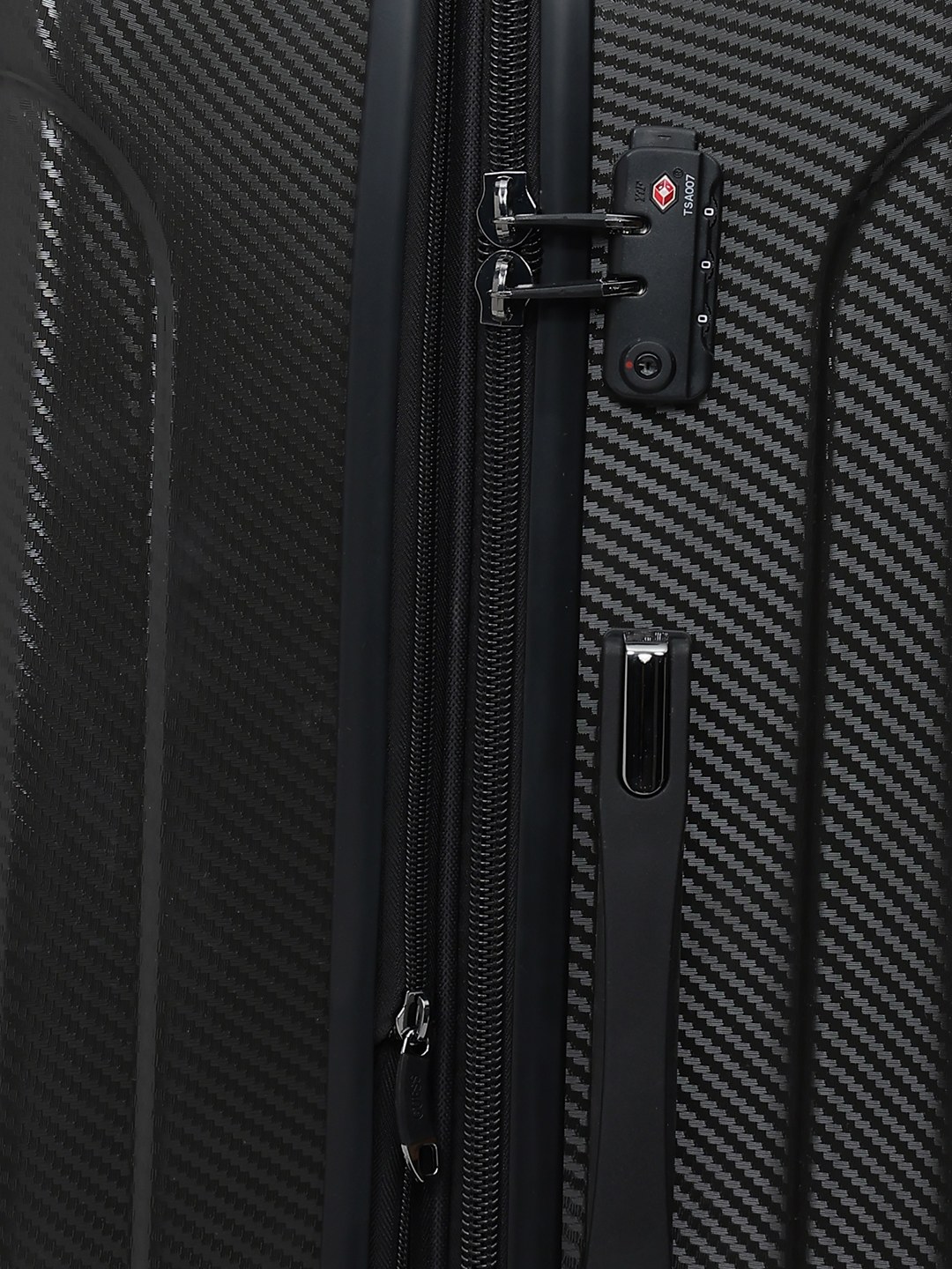 • Discover the perfect travel companion with our sleek black trolley bag designed for women. Crafted from a durable blend of 92% ABS and 8% PC fabric, this trolley bag ensures long-lasting performance. The textured pattern adds a touch of elegance while providing a secure grip. Its spacious interior offers ample room for all your essentials, making it ideal for both short getaways and extended trips. Smooth-rolling wheels and a sturdy handle ensure effortless maneuverability. Travel in style and confidence with this chic and functional trolley bag.