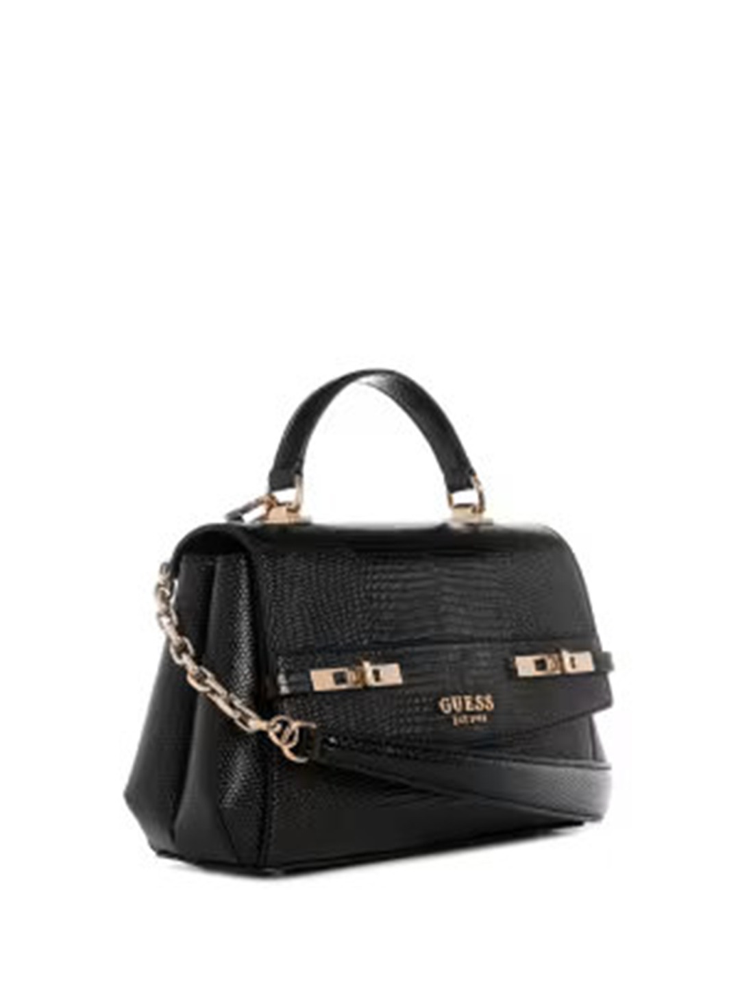Black Textured Magnet Melinda Top Handle Flap Shoulder Bag
