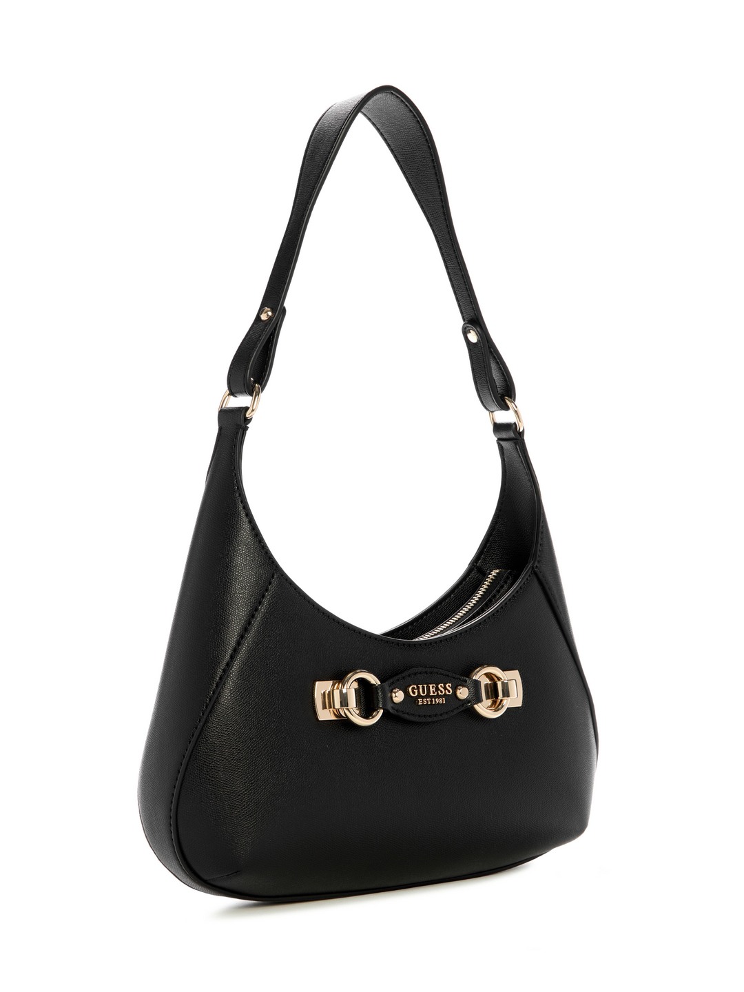 Black Textured Mimina Top Zip Shoulder Bag