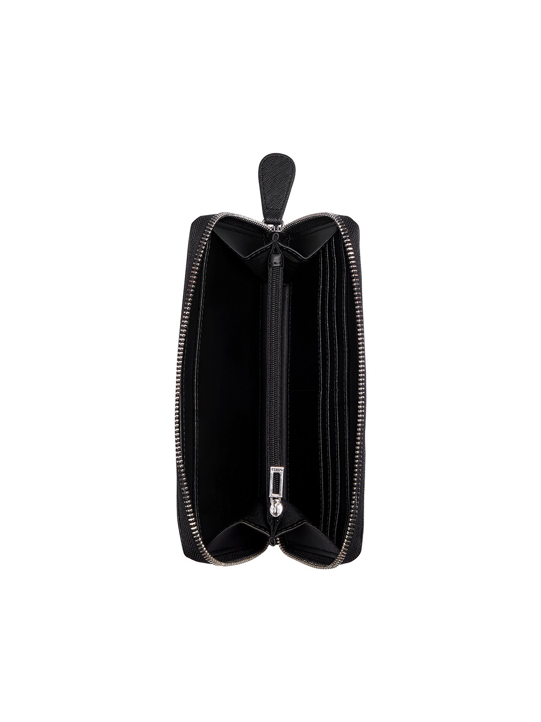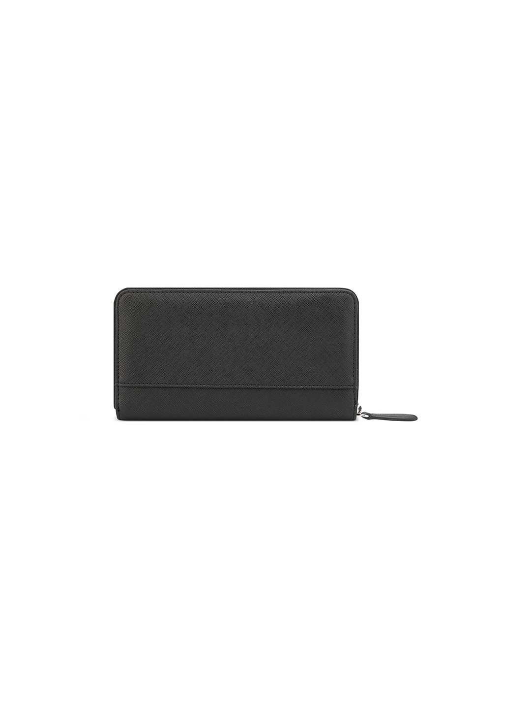 Discover the perfect blend of style and functionality with our zip around wallet in classic black. Crafted from durable pvc fabric, this wallet features a sophisticated textured pattern that adds a touch of elegance to your everyday essentials. Designed for the modern woman, it offers ample space with multiple card slots, a secure zippered coin pocket, and compartments for cash and receipts. The zip-around closure ensures your belongings stay safe and organized. Compact yet spacious, this wallet is ideal for any occasion.