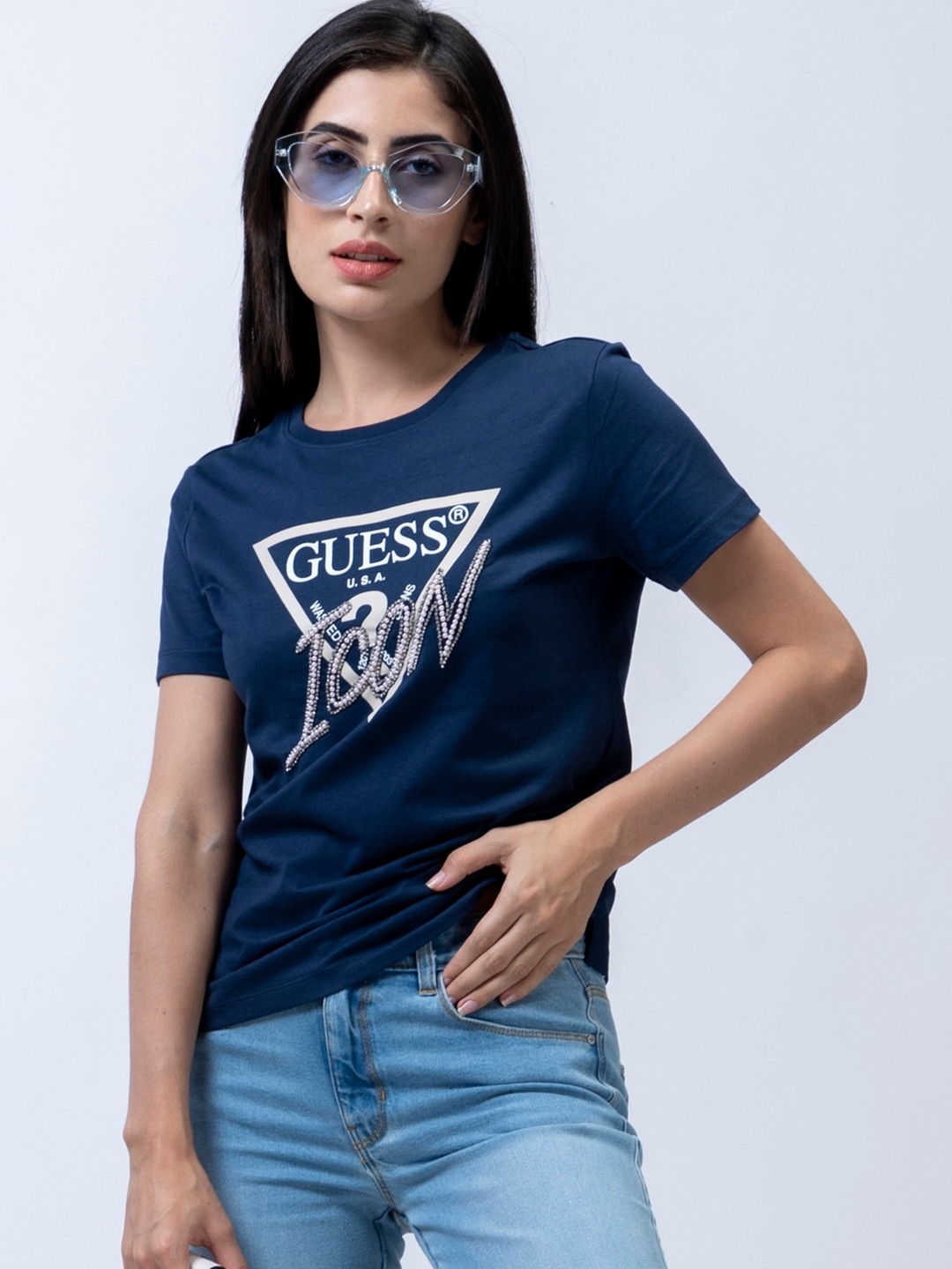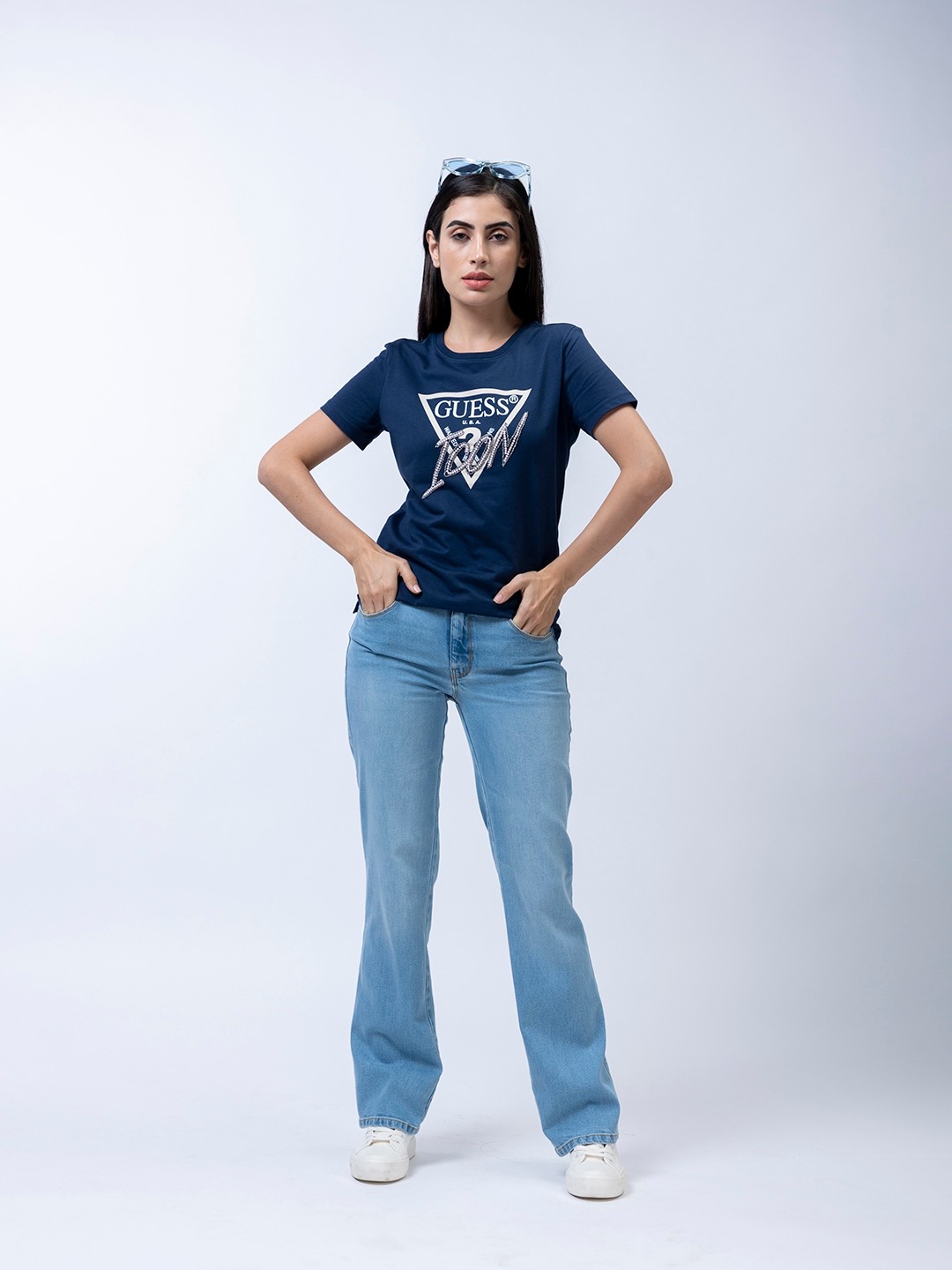 Elevate your casual wardrobe with our stylish blue printed T-shirt, designed for women who appreciate comfort and flair. This regular-fit tee features a captivating printed pattern that adds a touch of personality to any outfit. Crafted from pure cotton fabric, it ensures breathability and softness for all-day wear. The short sleeves and classic round neck offer a timeless silhouette, making it perfect for any occasion. With its convenient pull-on closure, this T-shirt is as easy to wear as it is fashionable. Pair it with your favorite jeans or shorts for an effortlessly chic look that stands out.