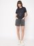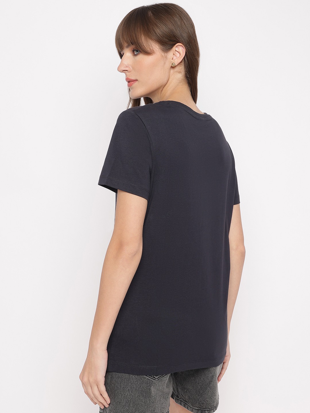 Blue Graphite Grey Printed Round Neck Short Sleeves T-Shirt