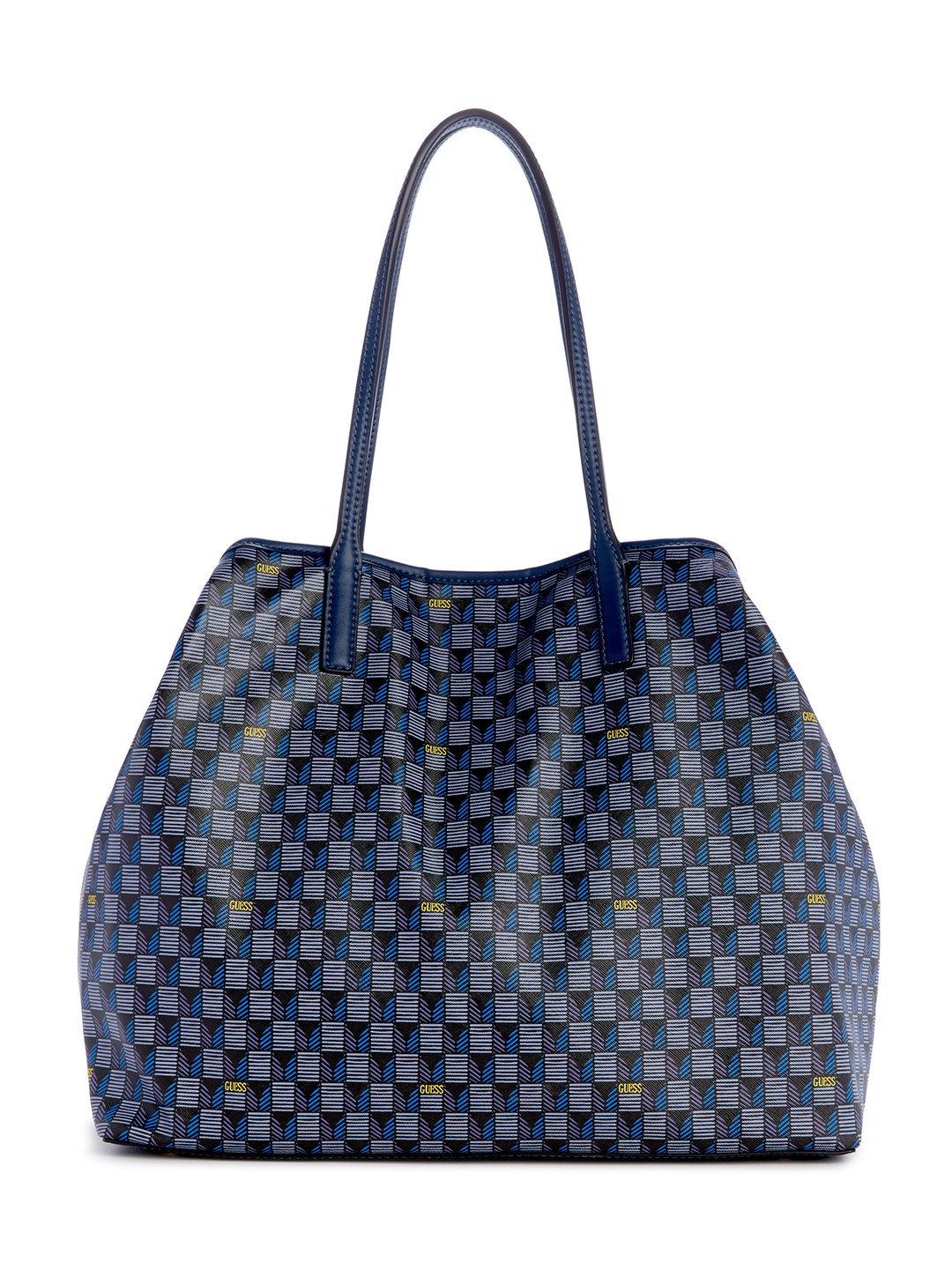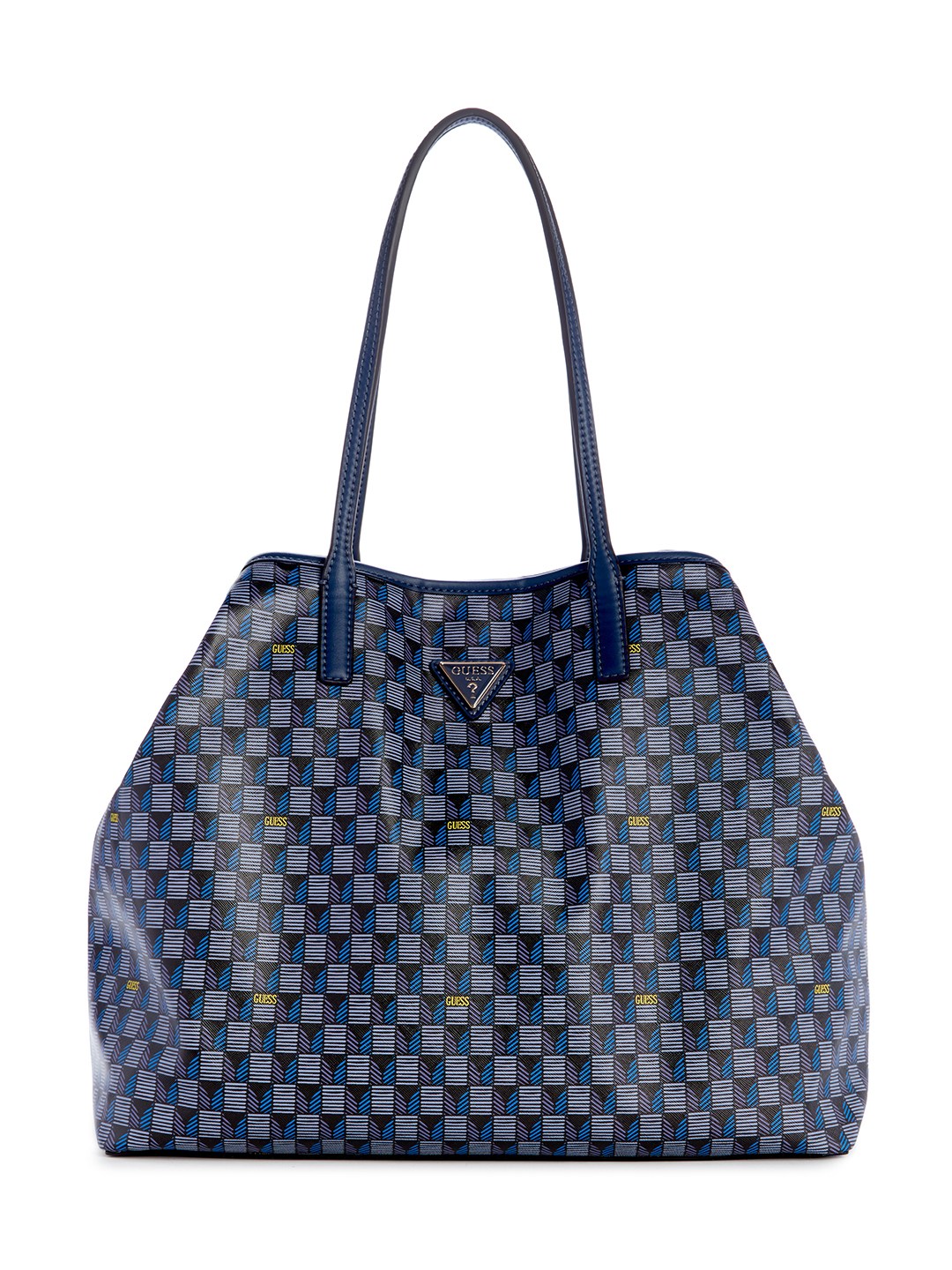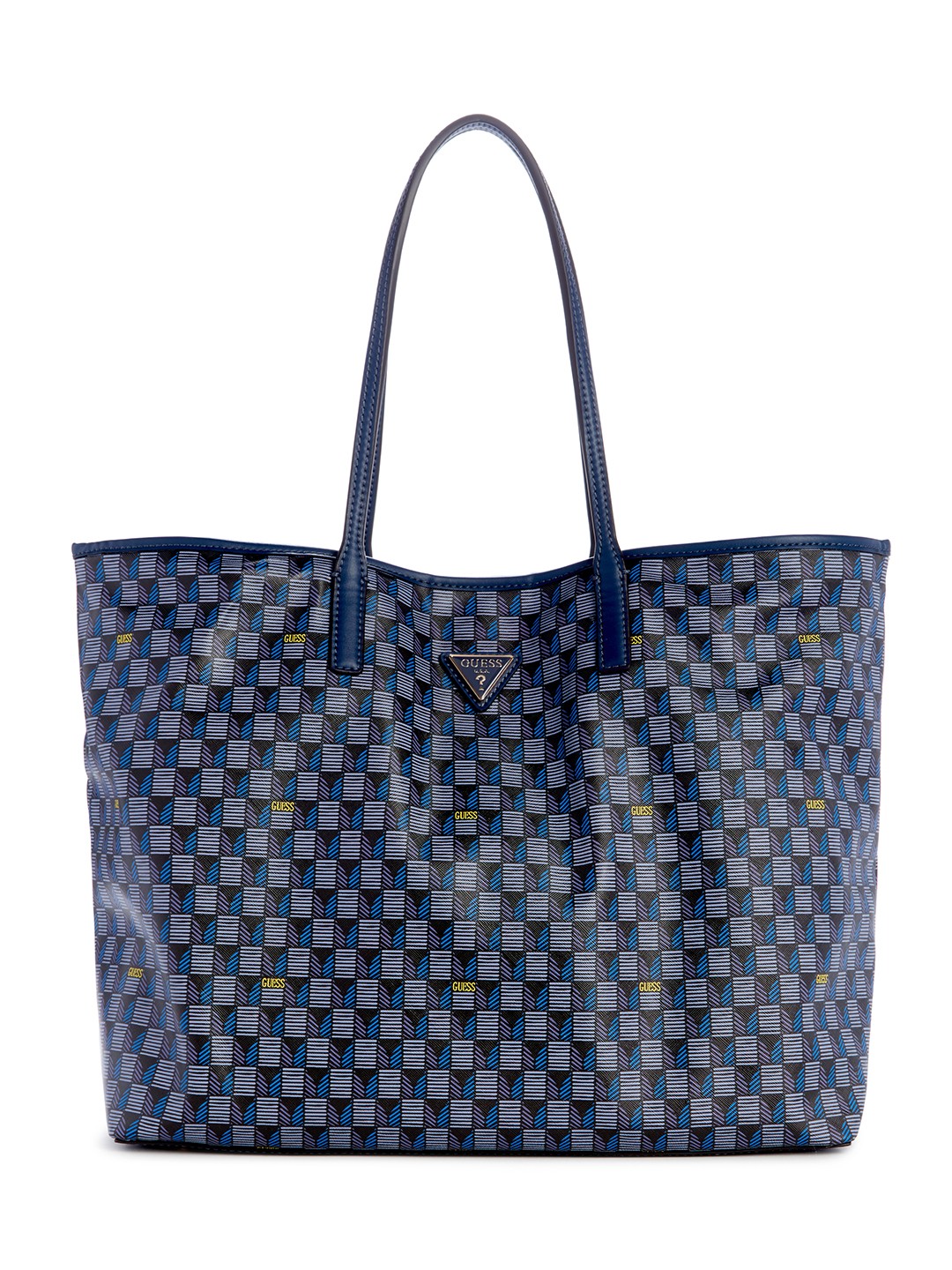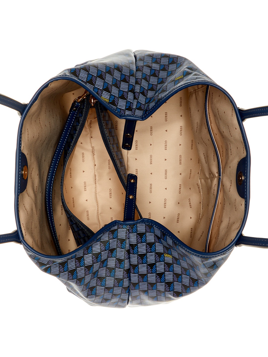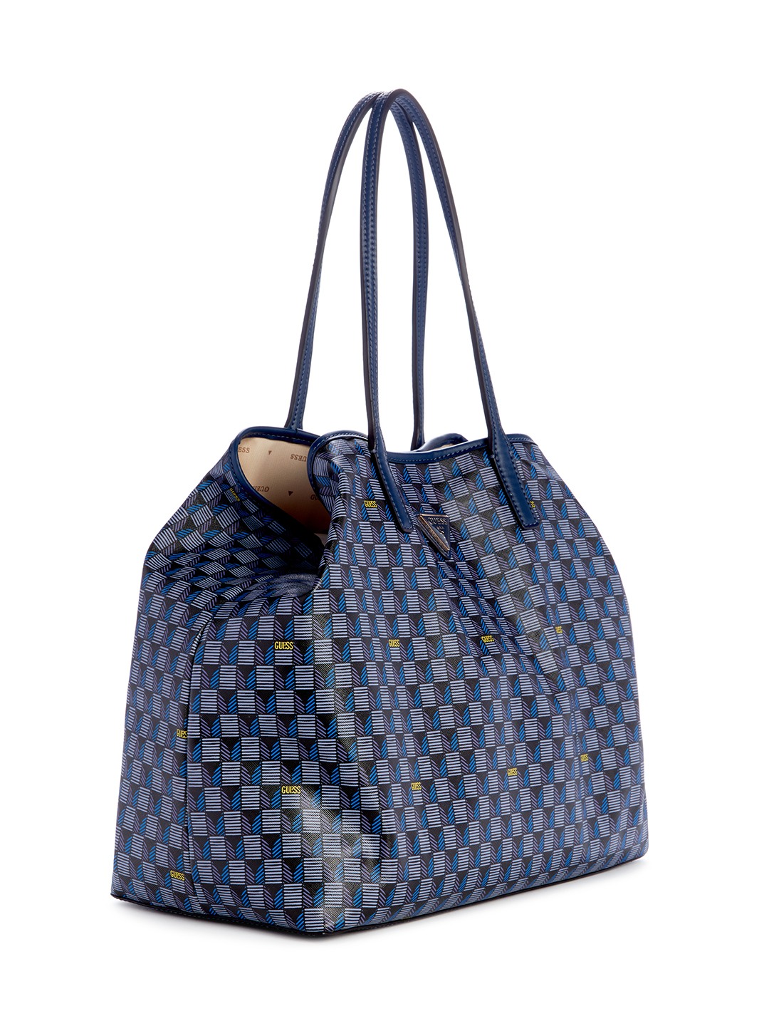 Blue Logo Printed Wave Large Shoulder Bag With Pouch