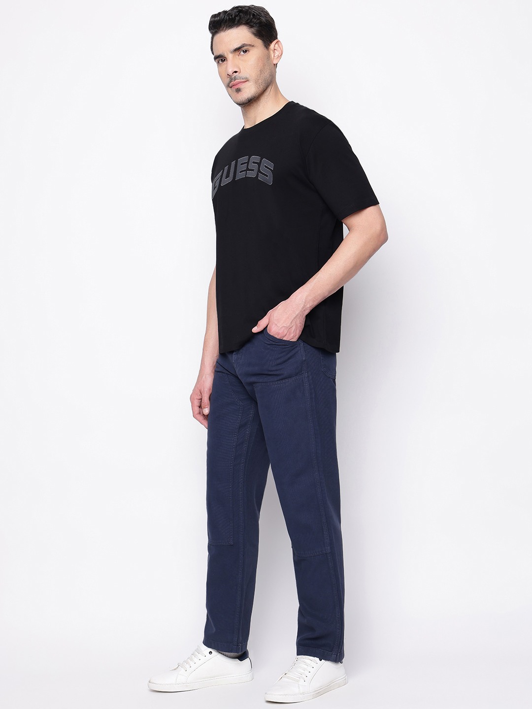 Discover the epitome of timeless style with our blue regular-fit jeans, crafted from pure cotton for unparalleled comfort. These solid-patterned jeans offer a classic silhouette that effortlessly complements any wardrobe. Designed for the modern man, they provide a perfect balance of durability and breathability, ensuring all-day ease. Whether you're dressing up for a night out or keeping it casual, these jeans are your go-to choice for a versatile, sophisticated look that never goes out of fashion.