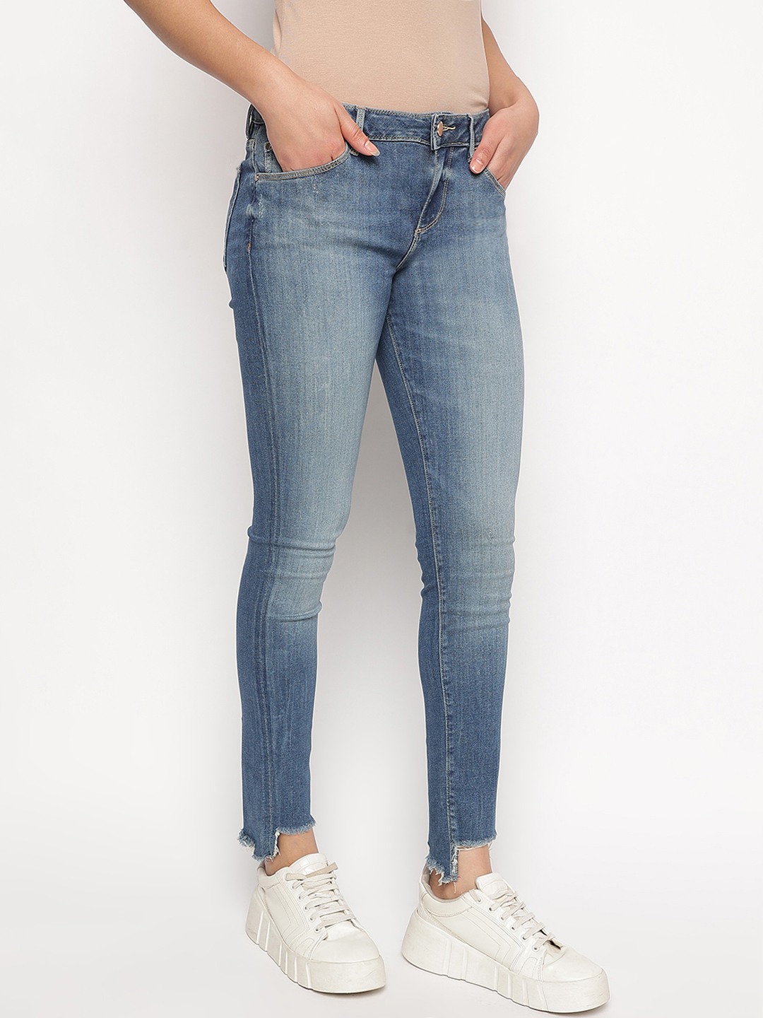 Blue Solid Skinny Fit Annette Eco Moon Jeans
