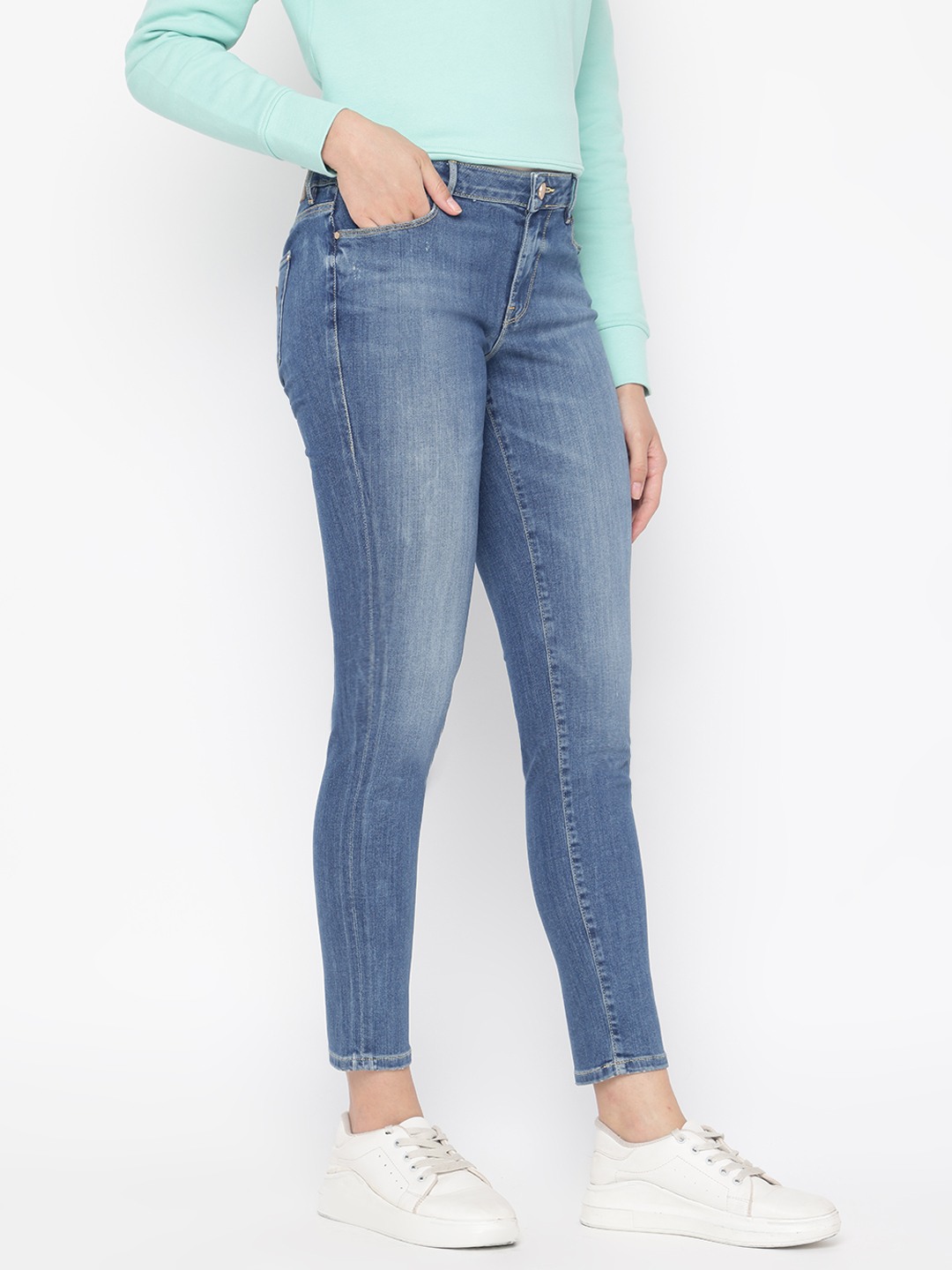 Blue Solid Skinny Fit Jeans