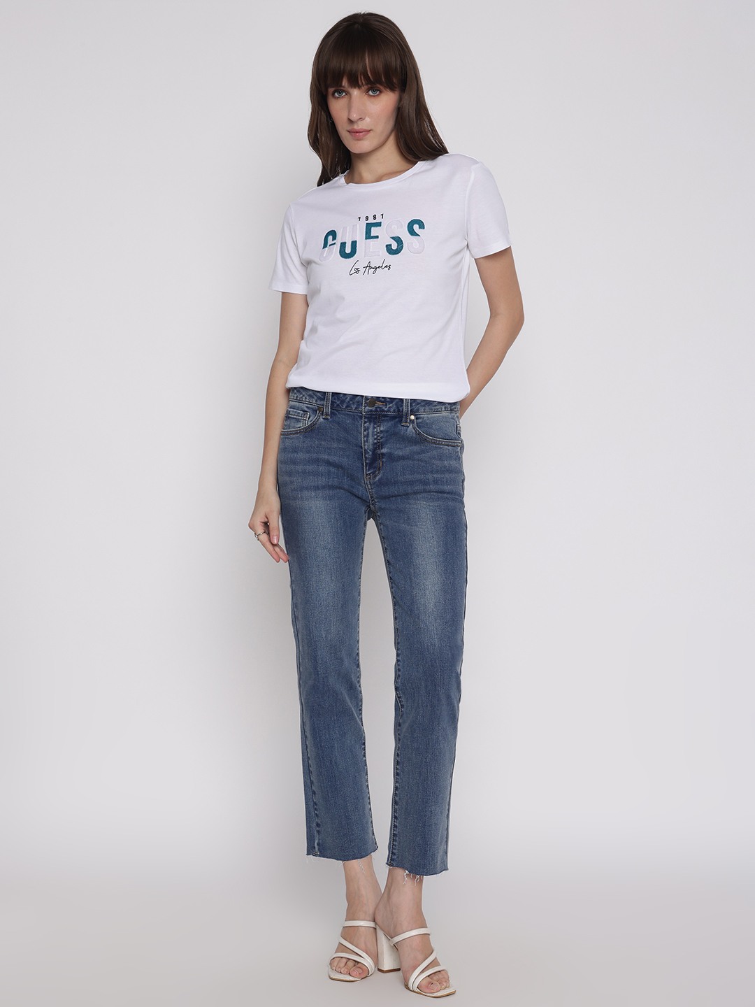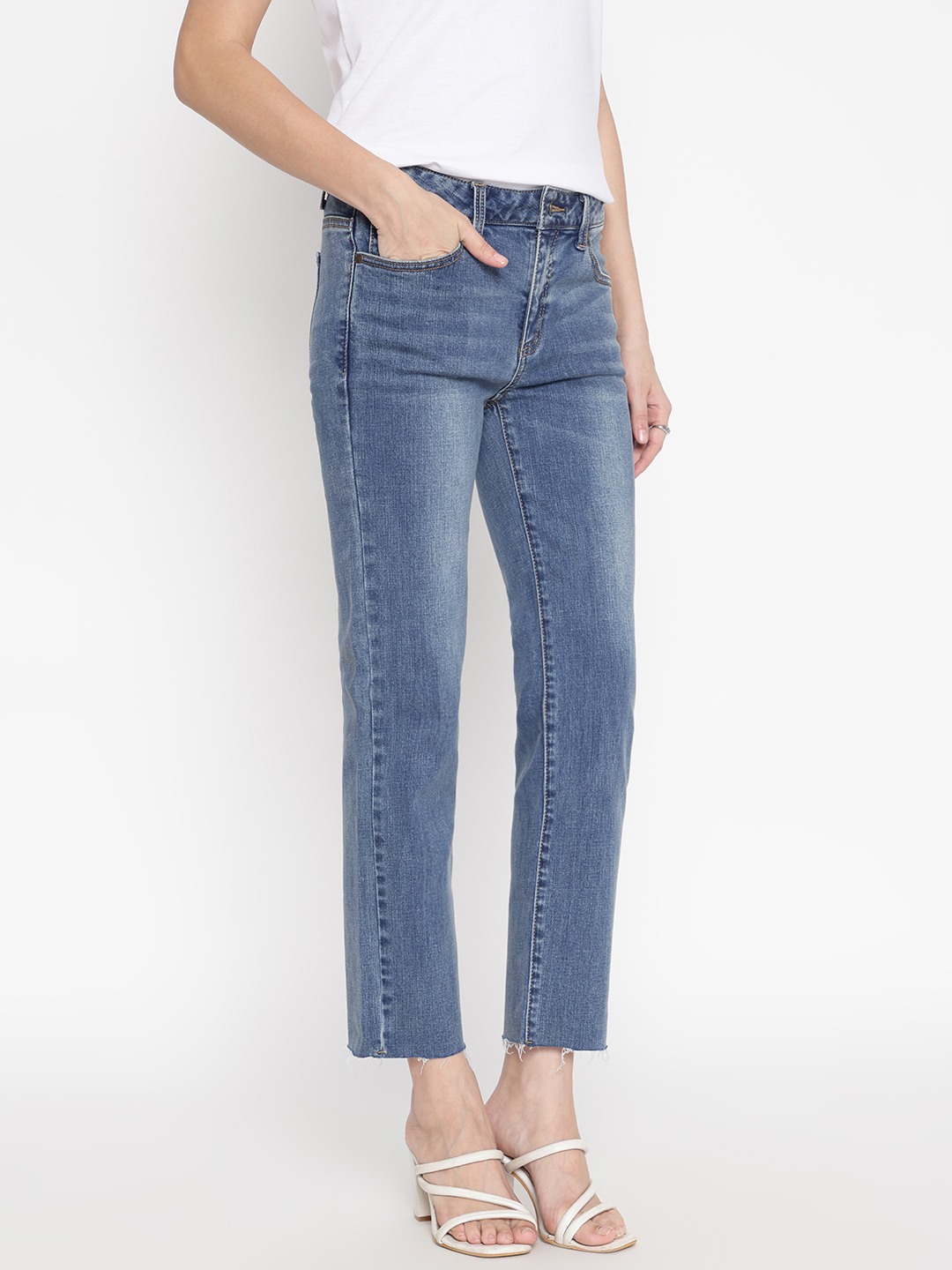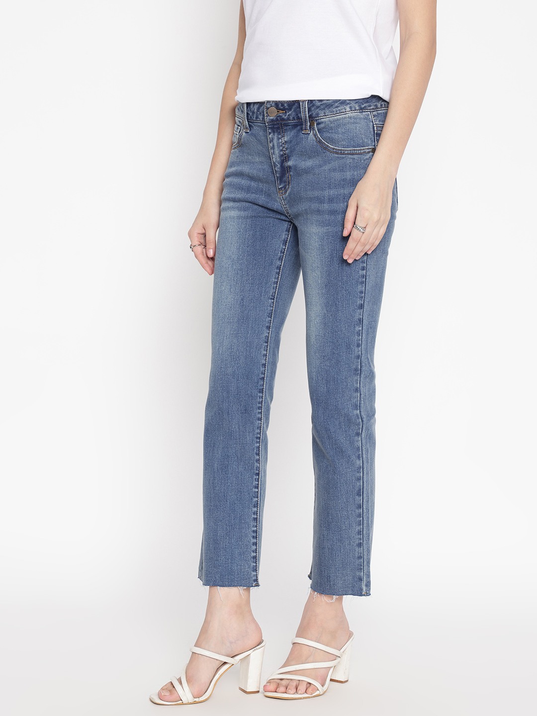 Discover the perfect blend of comfort and style with our women's blue straight-fit jeans. Crafted from a premium fabric mix of 99% cotton and 1% elastane, these jeans offer a soft feel with just the right amount of stretch for all-day wear. The mid-rise design provides a flattering silhouette, while the solid pattern ensures versatility for any occasion. Featuring a classic button closure, these jeans are ideal for pairing with your favorite tops and accessories. Elevate your wardrobe with this timeless essential.