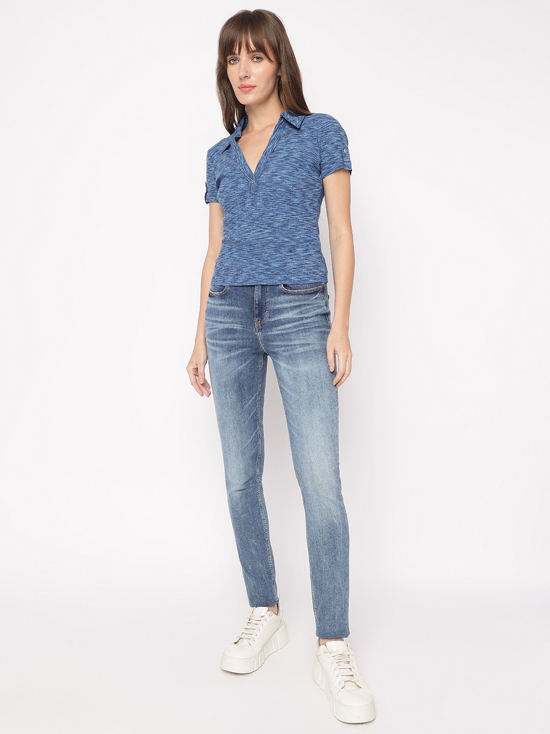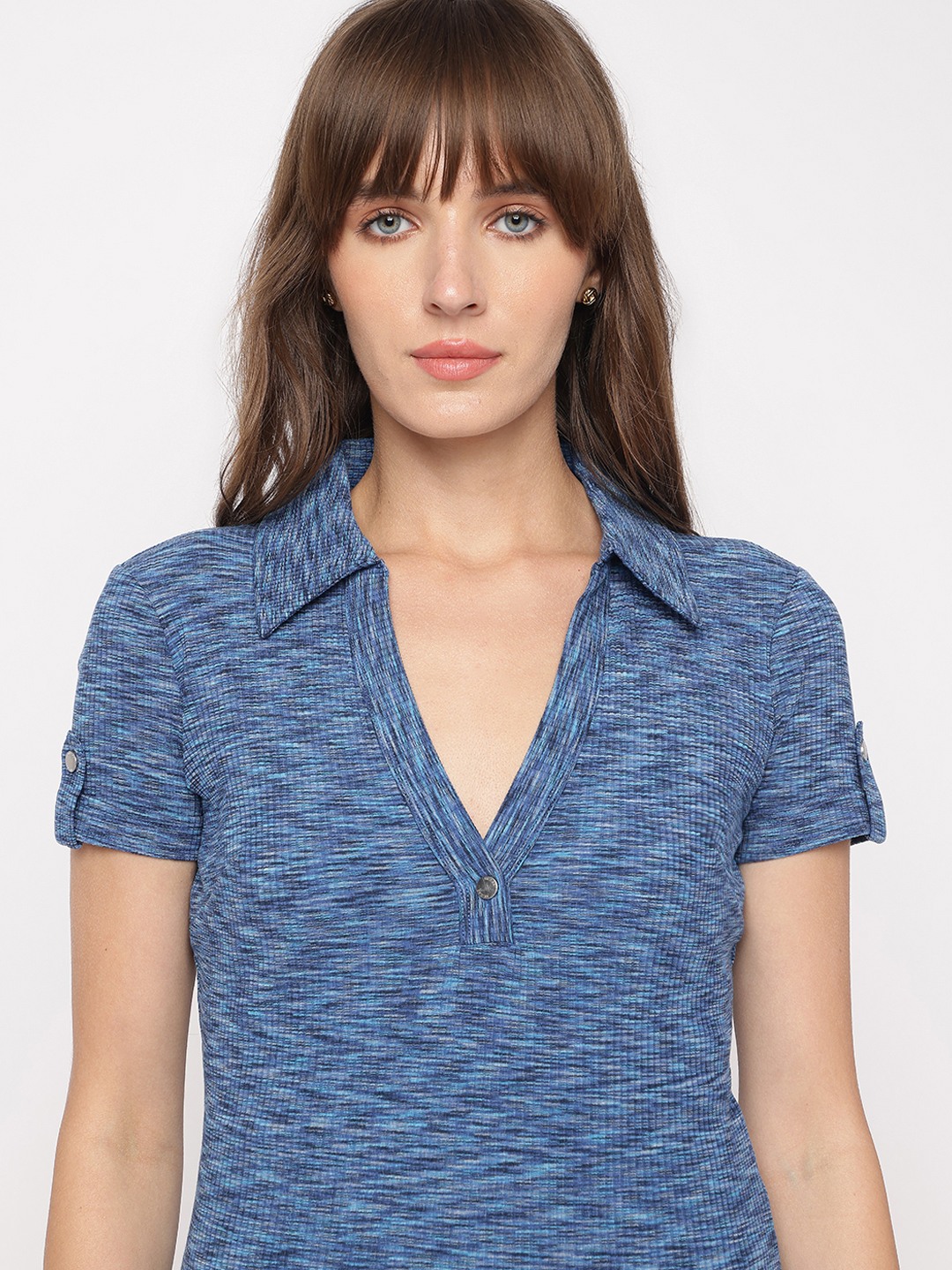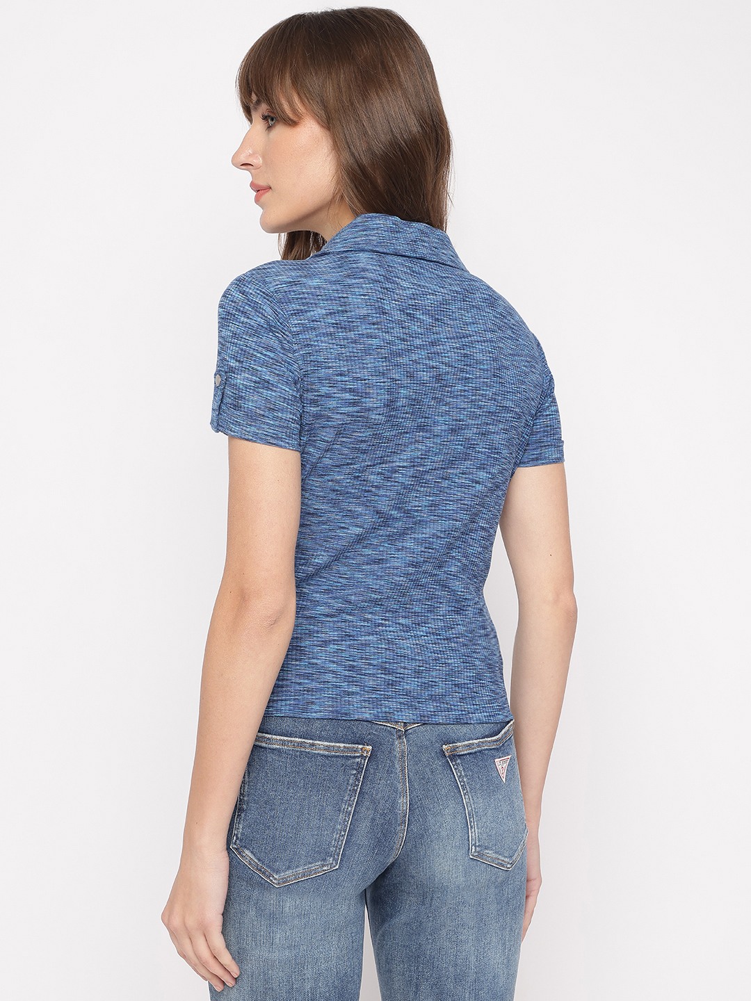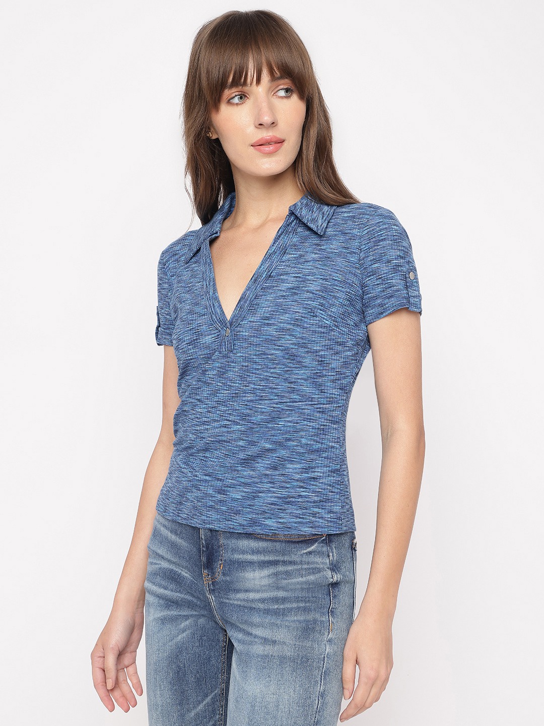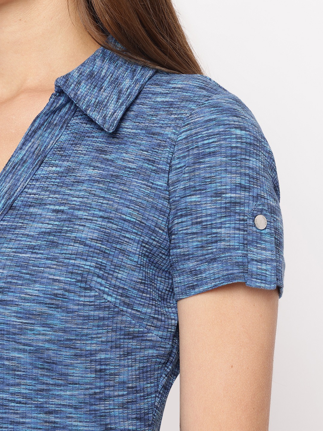 Blue Space Dye Printed Johny Collar Short Sleeves Polo Latifah T-Shirt