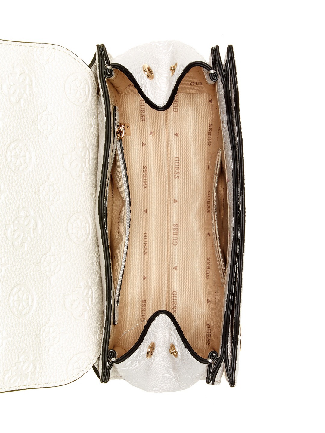 Discover elegance with our off white crossbody bag crafted from 100% PU fabric. Featuring an embossed logo pattern, this stylish accessory offers a chic touch to any outfit. Perfect for daily use, it combines functionality with fashion, providing ample space for essentials while ensuring comfort and sophistication for the modern woman.