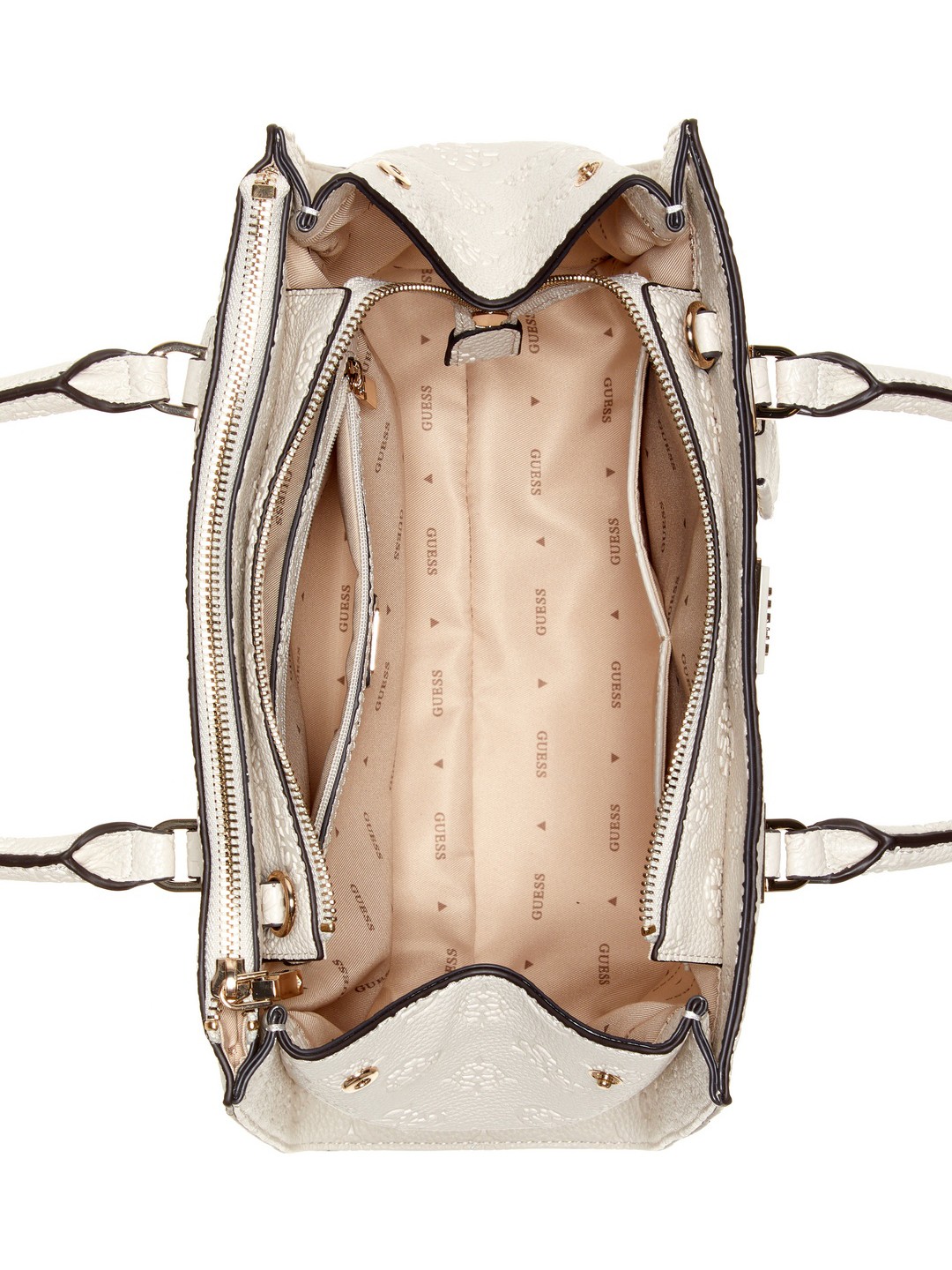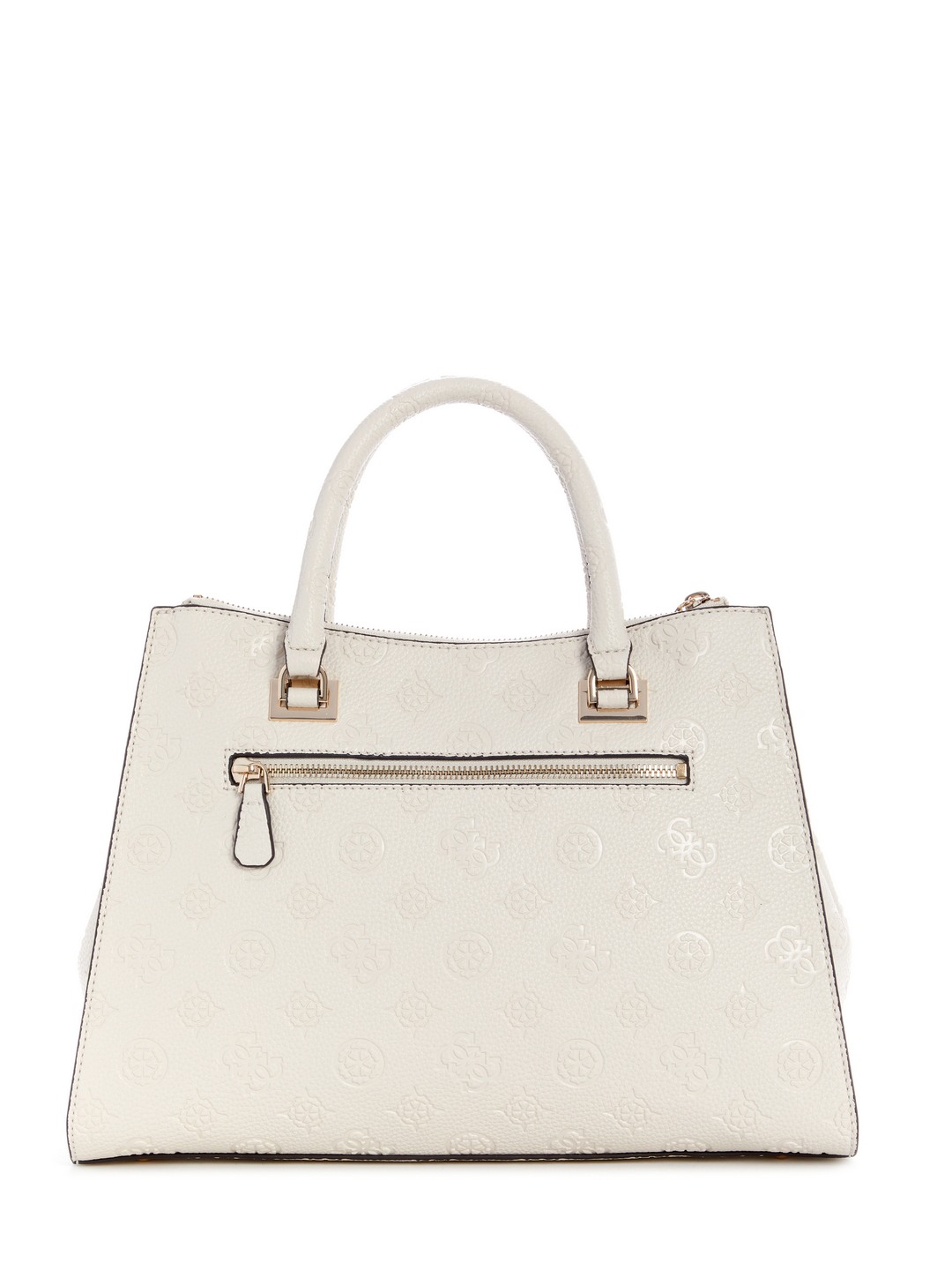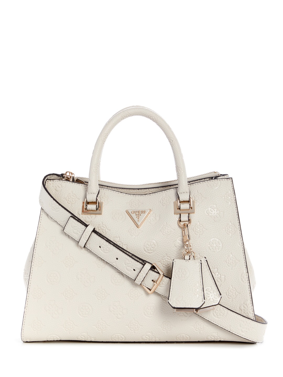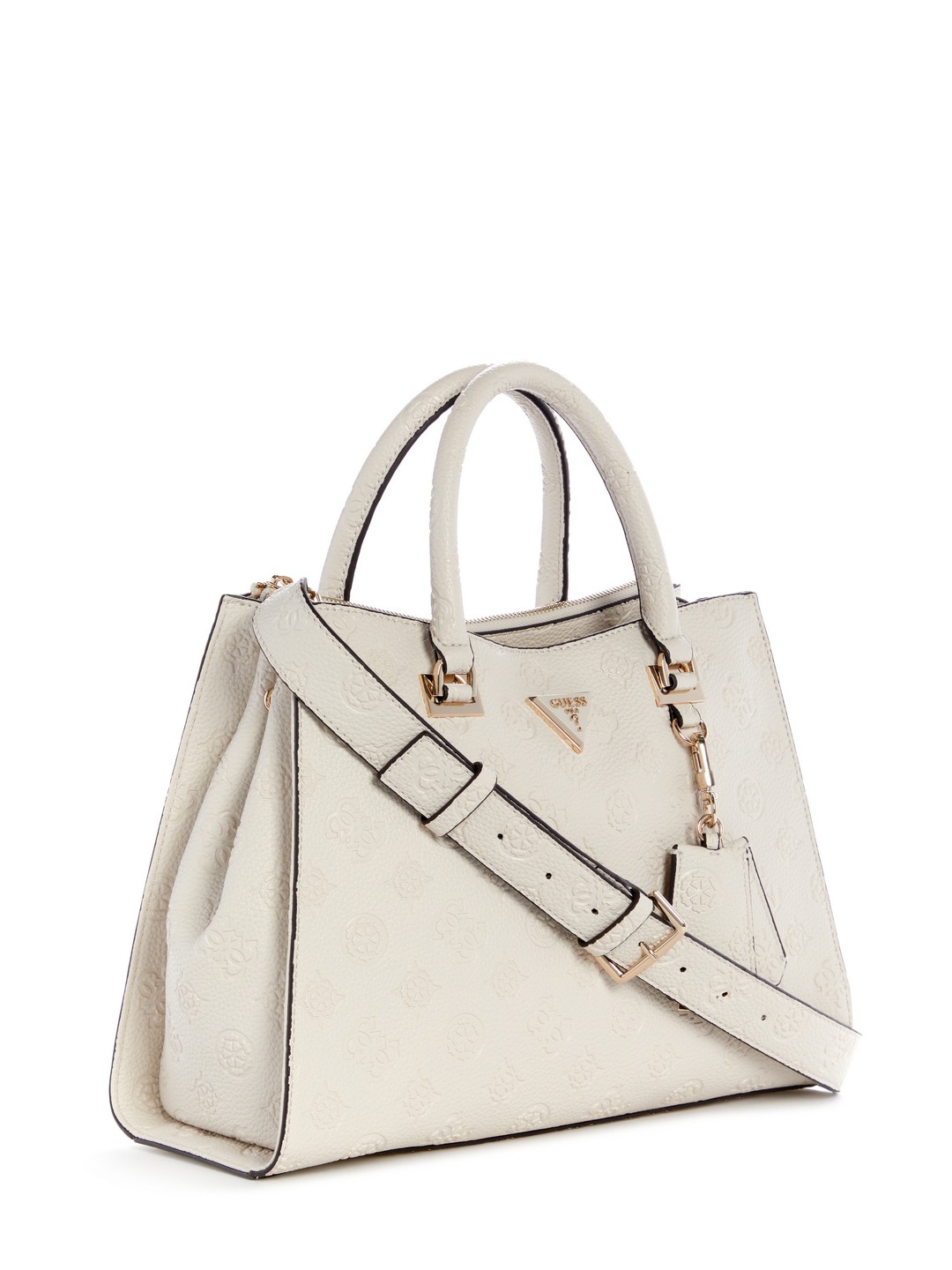 Discover elegance with our cream satchel bag crafted from 100% PU fabric. Featuring an embossed logo pattern, this stylish accessory is perfect for the modern woman. Its spacious interior and durable design make it ideal for daily use, effortlessly combining fashion and functionality. Elevate your wardrobe with this timeless piece.