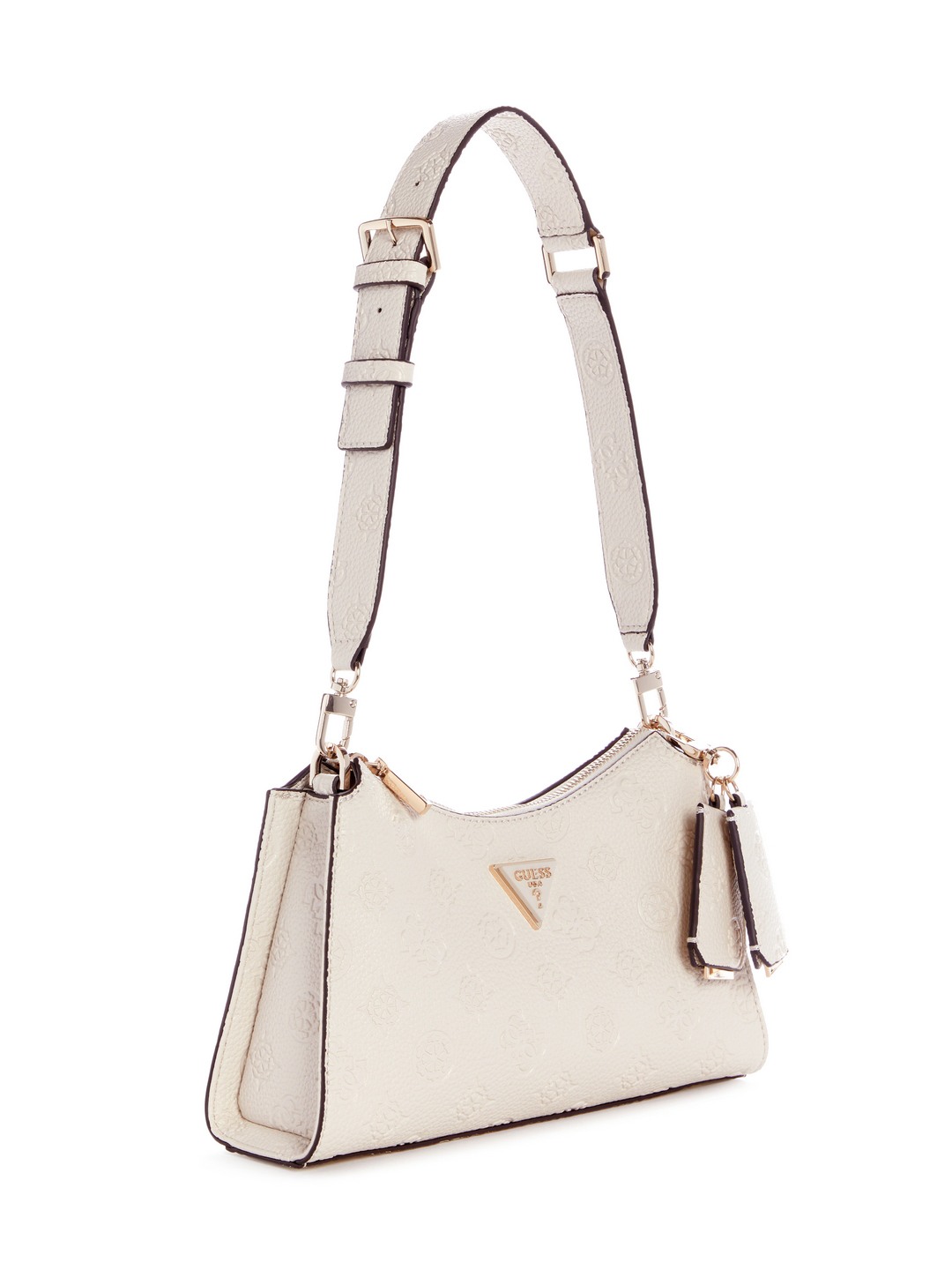 Discover elegance with our off white shoulder bag crafted from 100% PU fabric. Featuring an embossed logo pattern, this stylish accessory offers a sophisticated touch to any outfit. Perfect for daily use, it combines functionality with fashion, providing ample space for essentials while ensuring you stand out effortlessly. Ideal for modern women.