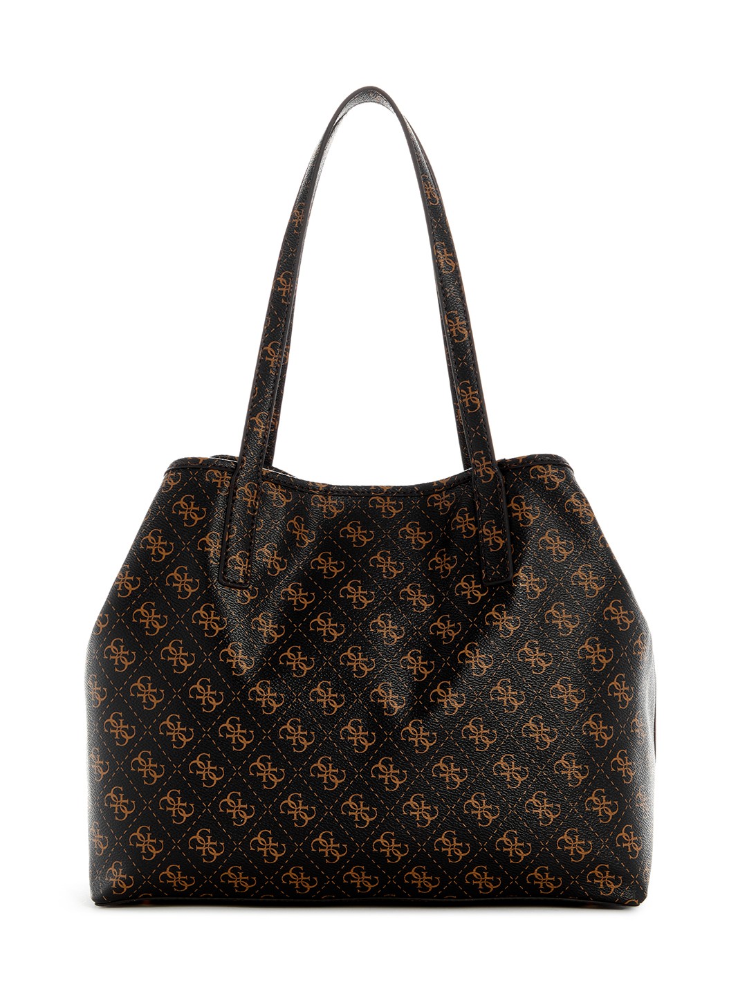 Brown Logo Printed Vikky Tote Bag With Pouch