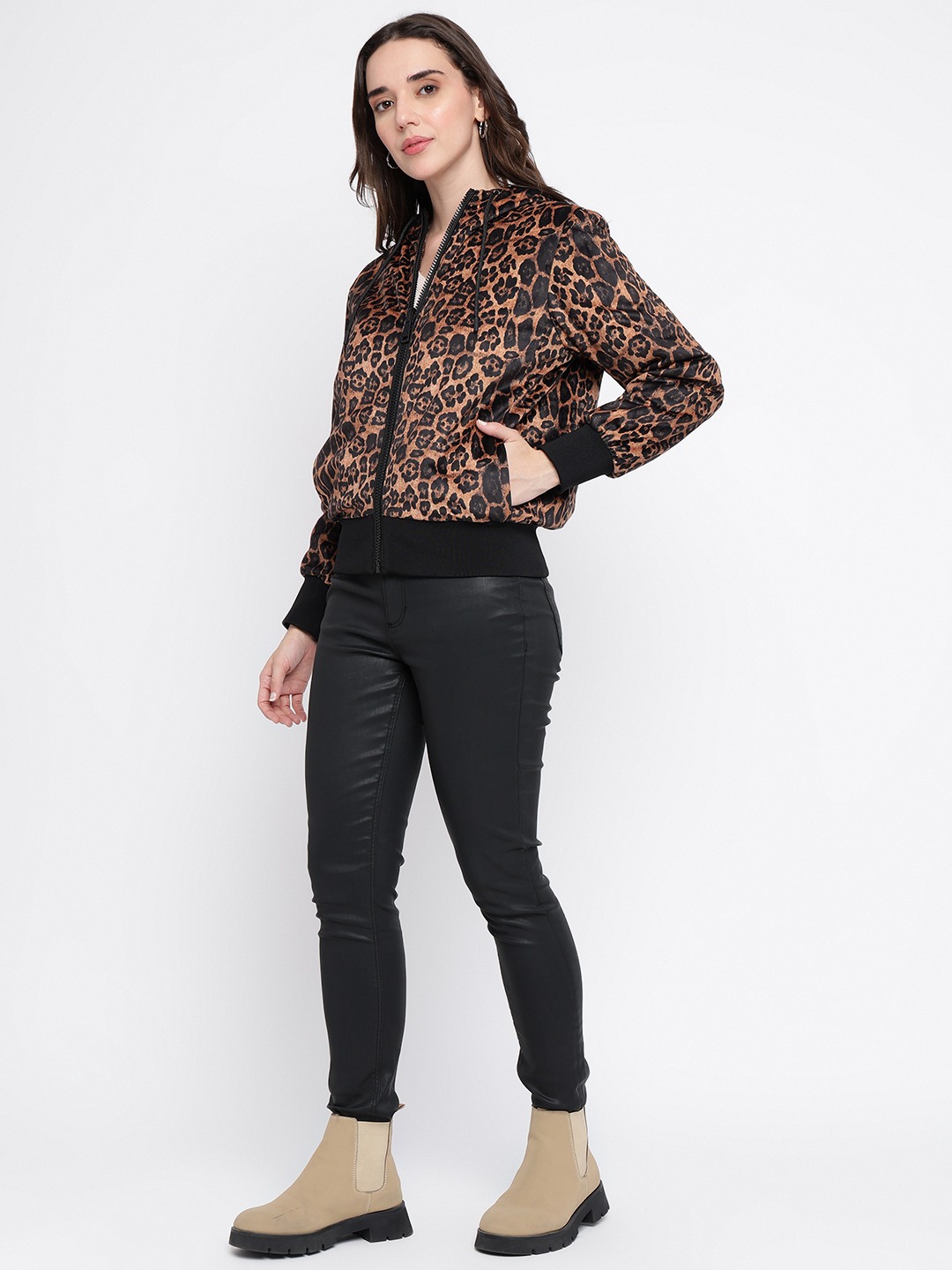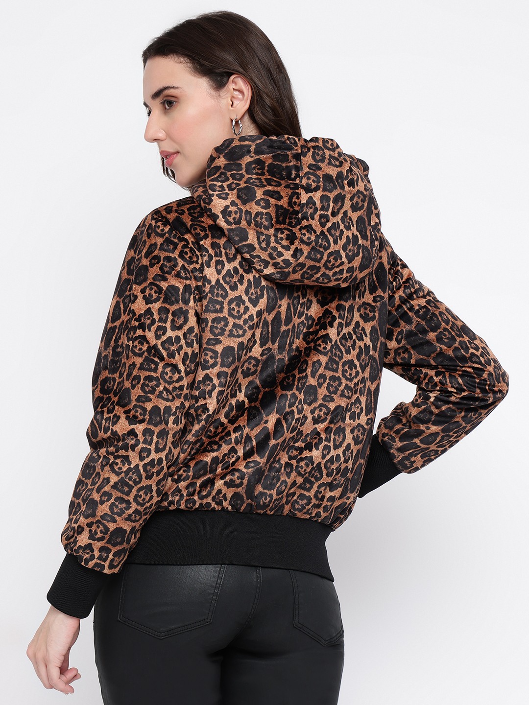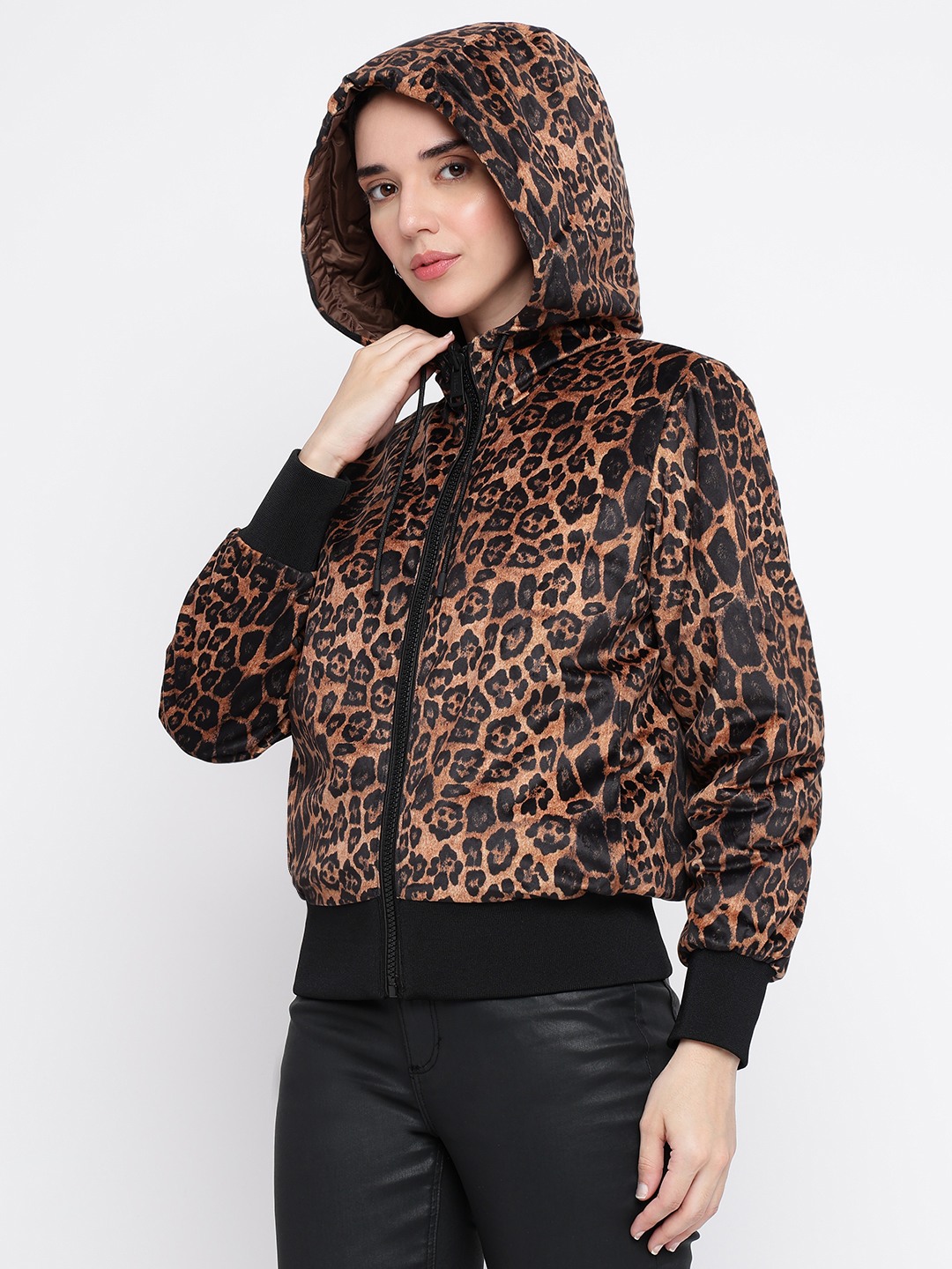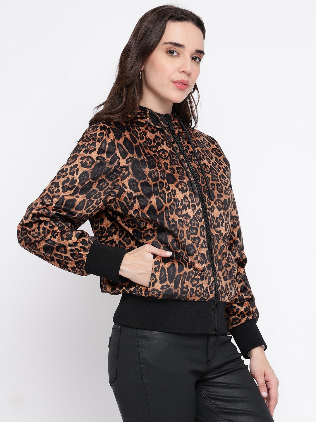 Elevate your style with our chic brown jacket, designed for the modern woman who values both comfort and fashion. This regular-fit jacket features a trendy printed pattern that adds a touch of flair to any outfit. Crafted from 100% cotton, it ensures breathability and softness, making it perfect for all-day wear. The full sleeves and hood provide extra warmth and versatility, while the convenient zipper closure offers ease and functionality. Perfect for layering, this jacket is a must-have addition to your wardrobe.