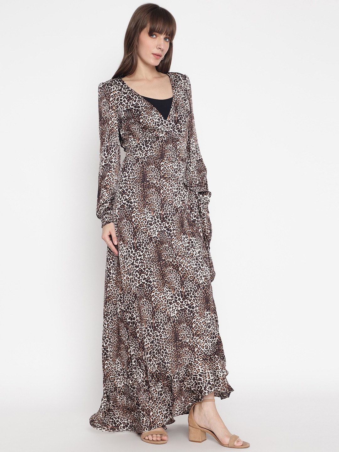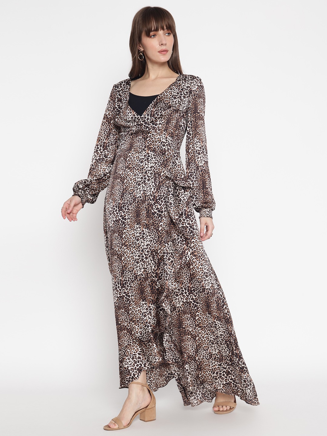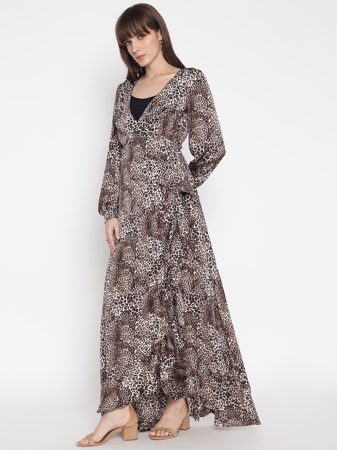 Elevate your wardrobe with our chic brown dress, designed for the modern woman who values both style and comfort. This regular-fit dress features a captivating printed pattern that adds a touch of elegance to any occasion. The full sleeves and V-neckline create a flattering silhouette, perfect for day-to-night transitions. Crafted from 100% polyester, it offers a soft, breathable feel. The convenient pull-on closure ensures ease of wear, making it a versatile addition to your fashion collection.
