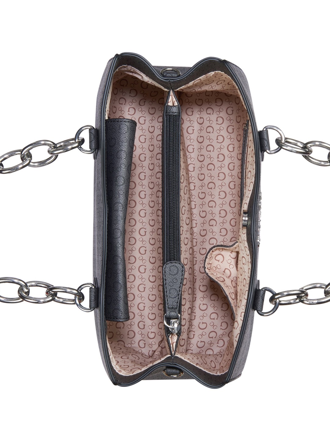 • Discover the perfect blend of style and functionality with our Satchel Bag in Charcoal Grey. Crafted from durable PVC fabric, this bag is designed to withstand daily wear while maintaining its chic appeal. The printed pattern adds a touch of modern elegance, making it a versatile accessory for any outfit. With ample space for your essentials, it features multiple compartments for easy organization. The adjustable strap ensures comfort, whether you're heading to work or a weekend getaway. Elevate your accessory game with this must-have satchel.